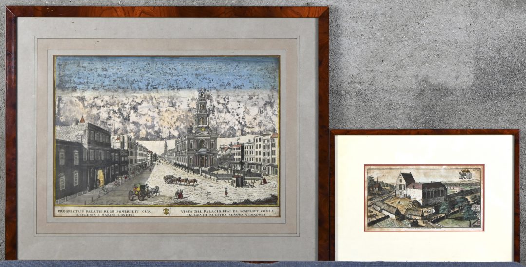 'Antwerp' and 'Vlissingen', a lot of two antique hand-colored etchings.No longer availableOnline onlyActive bid: 45.00 €Dim. 14/17 & 18/36 cmEstimate: € 30 / 50 -