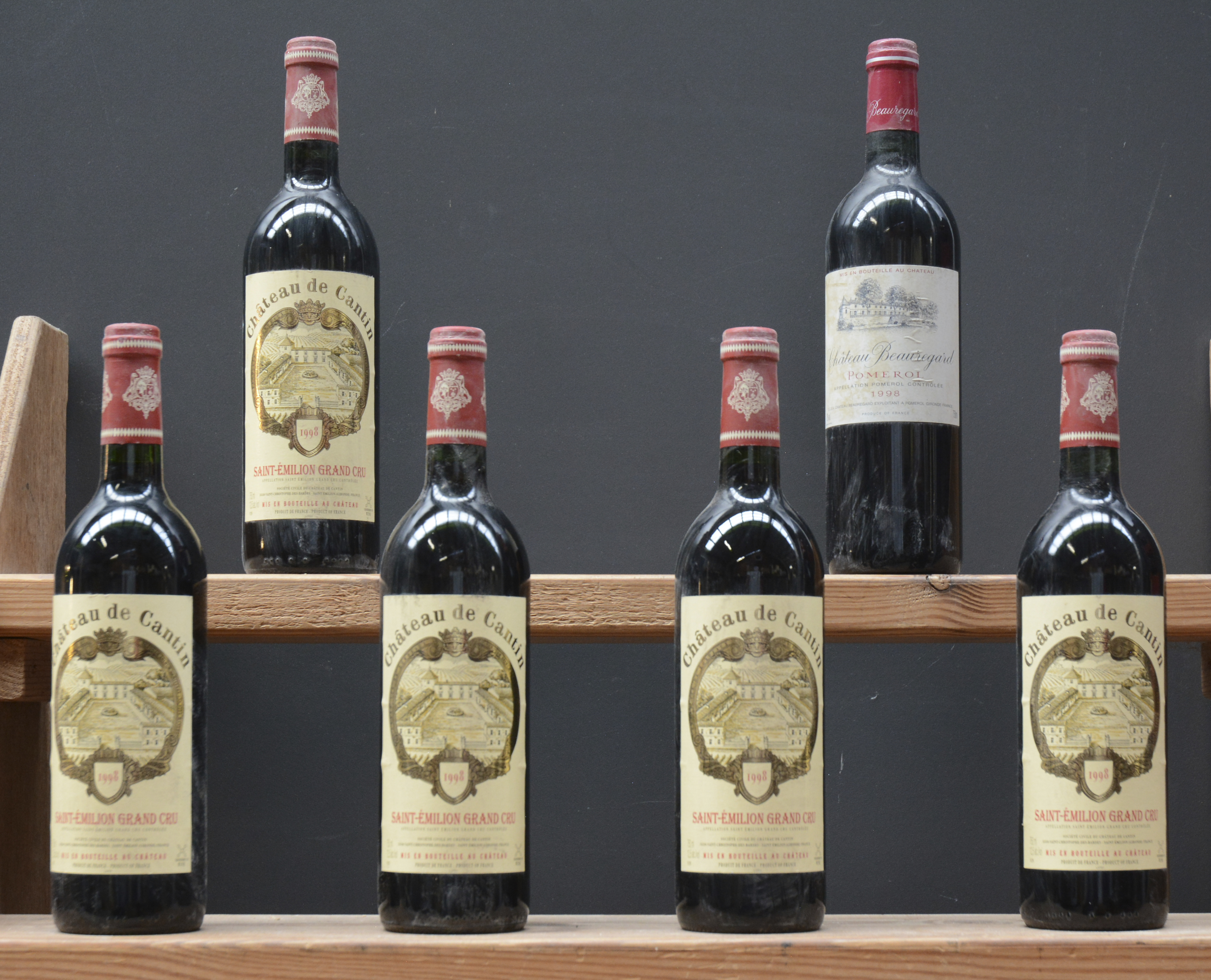 Lot rode bordeaux      1998  aantal: 6 bt    Ch. Beauregard A.C. Pomerol   M.C.  1998  aantal: 1 bt    Ch. de Cantin A.C. St-Emilion grand cru   M.C.  1998  aantal: 5 bt