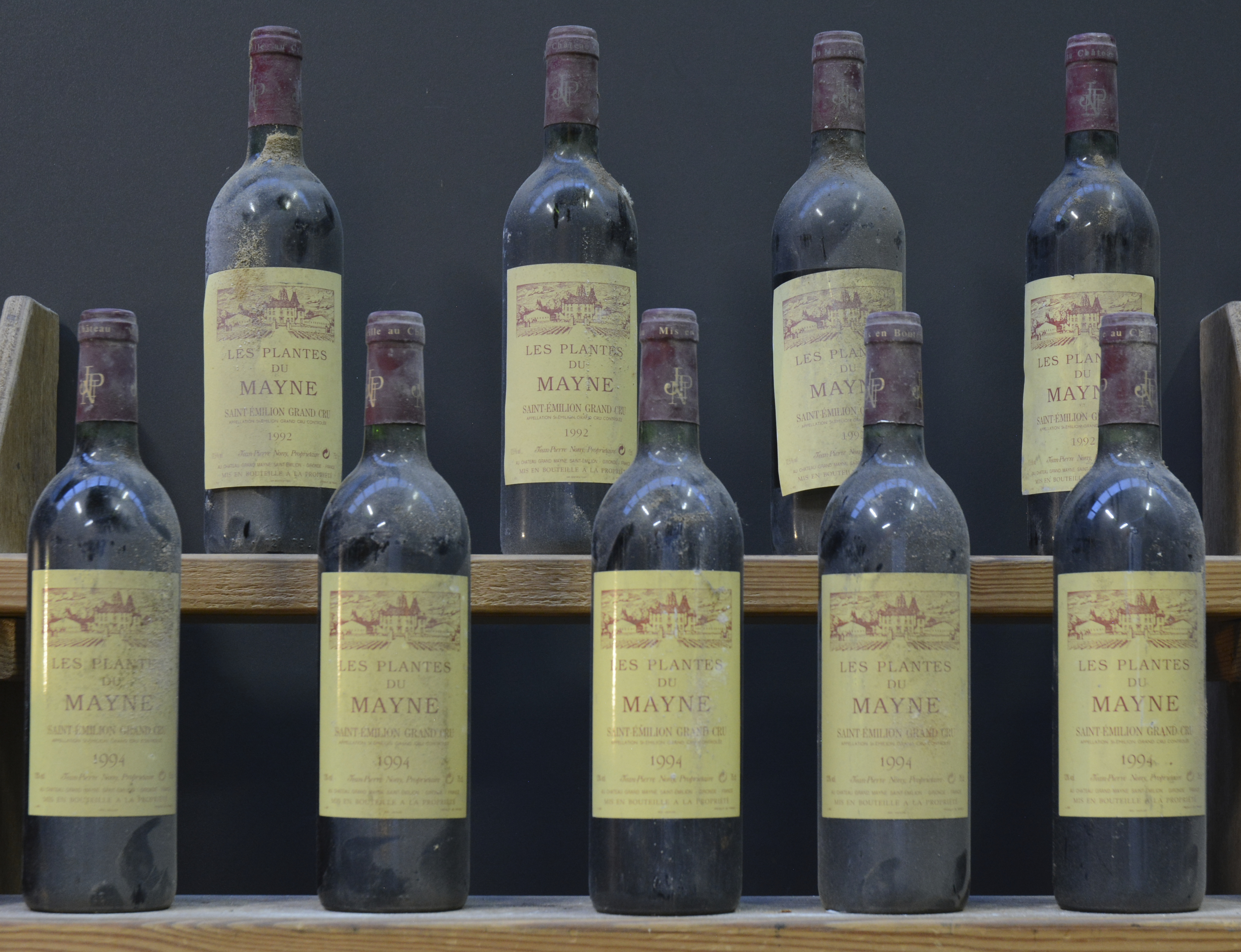 Lot rode bordeaux        aantal: 9 bt    Les Plantes du Mayne A.C. St-Emilion grand cru   M.P.  1992  aantal: 4 bt    Les Plantes du Mayne A.C. St-Emilion grand cru   M.P.  1994  aantal: 5 bt