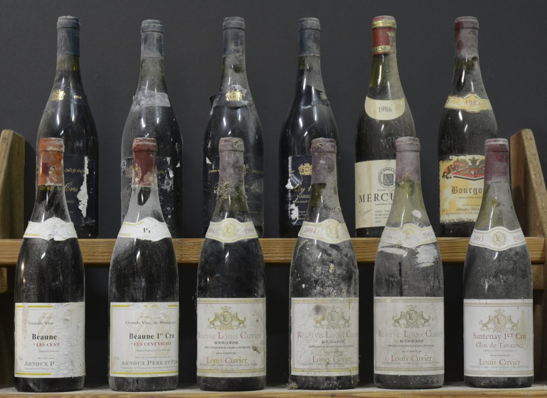 Lot rode bourgogne        aantal: 12 bt    Beaune 1e Cru Les Cent Vignes A.C.  Arnoux Père & Fils, Chorey M.O.  1998  aantal: 2 bt schade aan etiketten   Rully 1e Cru Marissou A.C.  Ancienne Maison Lafite M.O.  1994  aantal: 4 bt schade aan etiketten   Bourgogne Réserve Louis Cuvier A.C.  Louis Cuvier, Nuits M.O.  1984  aantal: 4 bt    Bourgogne A.C.  Sérafin Père & Fils, Gevrey M.O.  1983  aantal: 1 bt    Mercurey A.C.  Emile Voarick, St-Martin-sous-Montaigu M.O.  1986  aantal: 1 bt