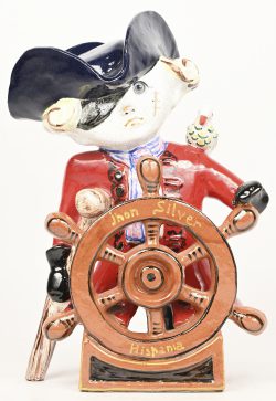 A colored porcelain figurine of a young helmsman, dressed as Long John Silver. Spanish work. -