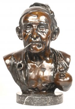 "Fisherman with Pipe and Jug," a bronze bust on a marble base, signed by Vincenzo Cinque. -