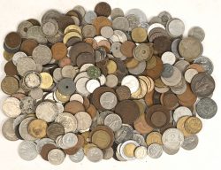 Lot of copper, bronze, and nickel coins. From the late 19th century to the 1980s. Possibly from Belgium, Bulgaria, Cuba, Germany, France, Great Britain, Italy, Yugoslavia, Luxembourg, Poland, Portugal, Rhodesia, Romania, United States, South Africa, Switzerland, and others. -