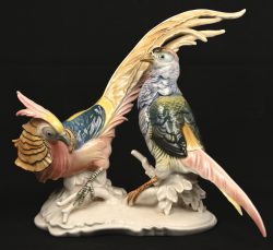 'Gold pheasants', a group of multicolored porcelain. Bears the mark ENS, Germany. -