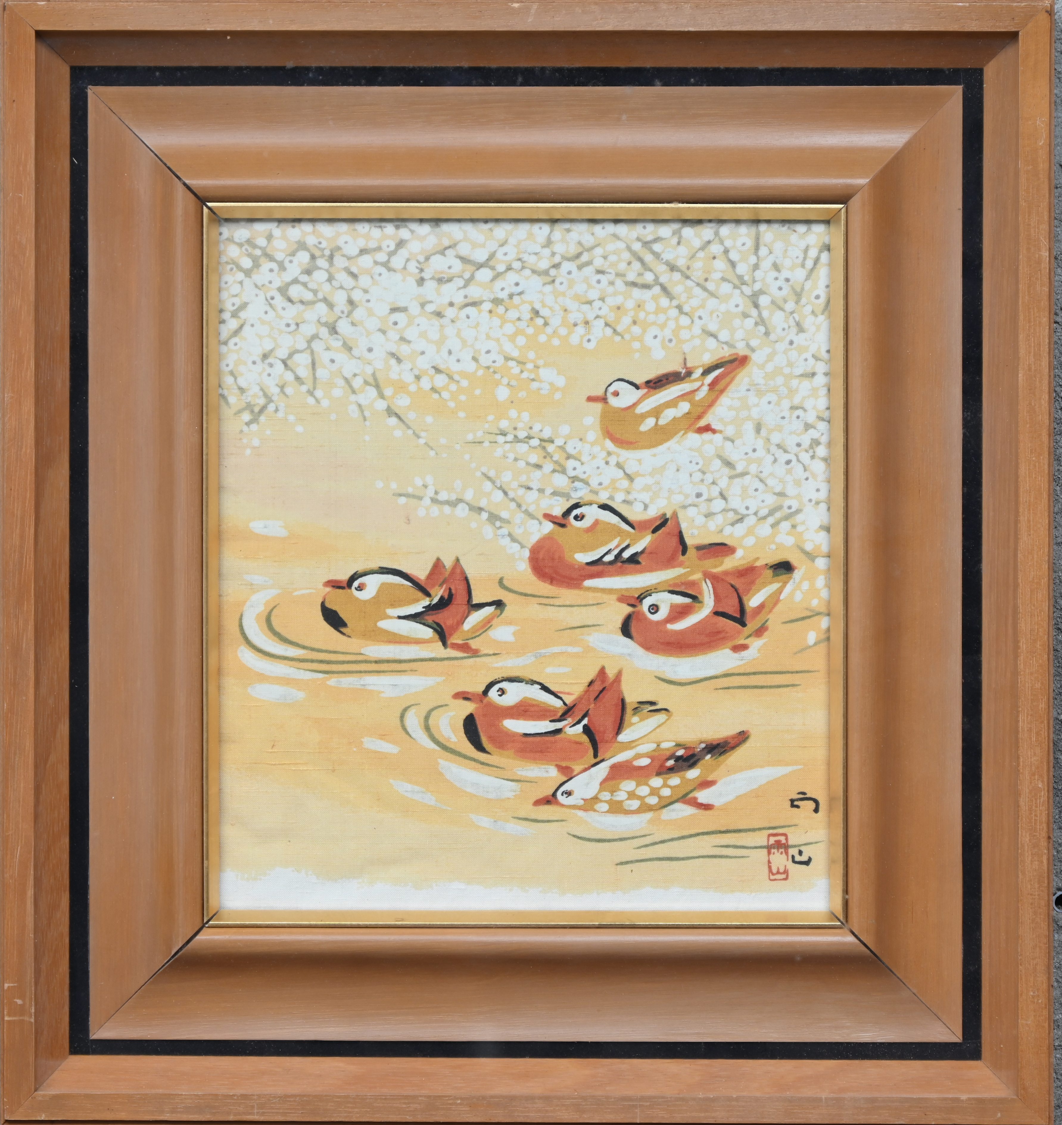 Mandarijneenden, een Chinees schilderij op zijde.