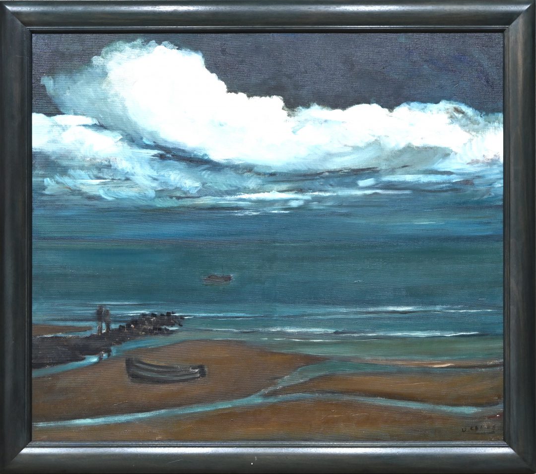 'Steamship', oil on canvas with marouflaged technique. Signed. -