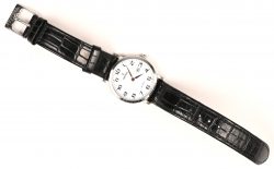 A stainless steel ladies' watch with a leather wristband.Place a bid ›Estimate: € 50 / 80