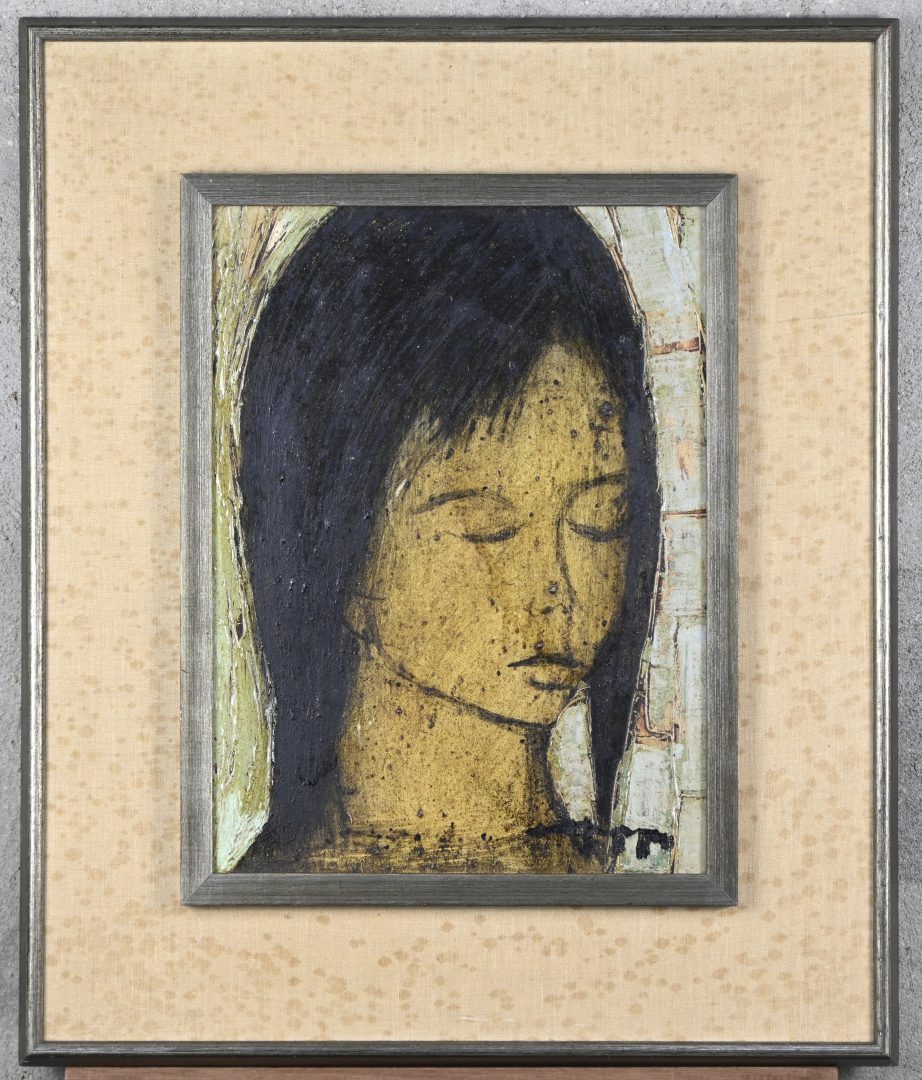 “Witte pater in kloostergang”. Olieverf op doek. Geisgneerd rechtsonder.