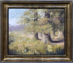 #432Paul HagemansPeriod: Antwerpen 1884-1959‘Boszicht’. Olieverf op paneel. Getekend.
