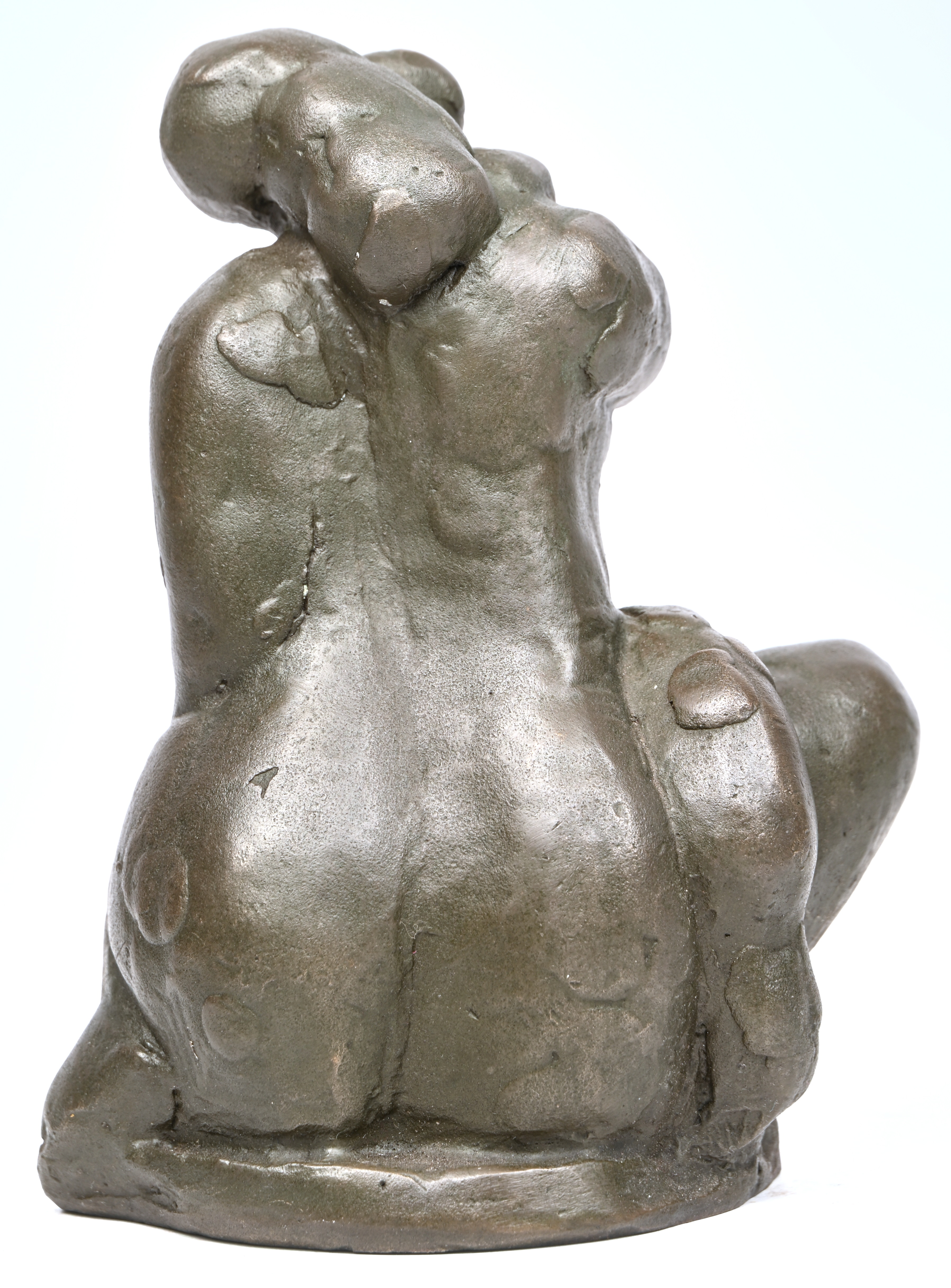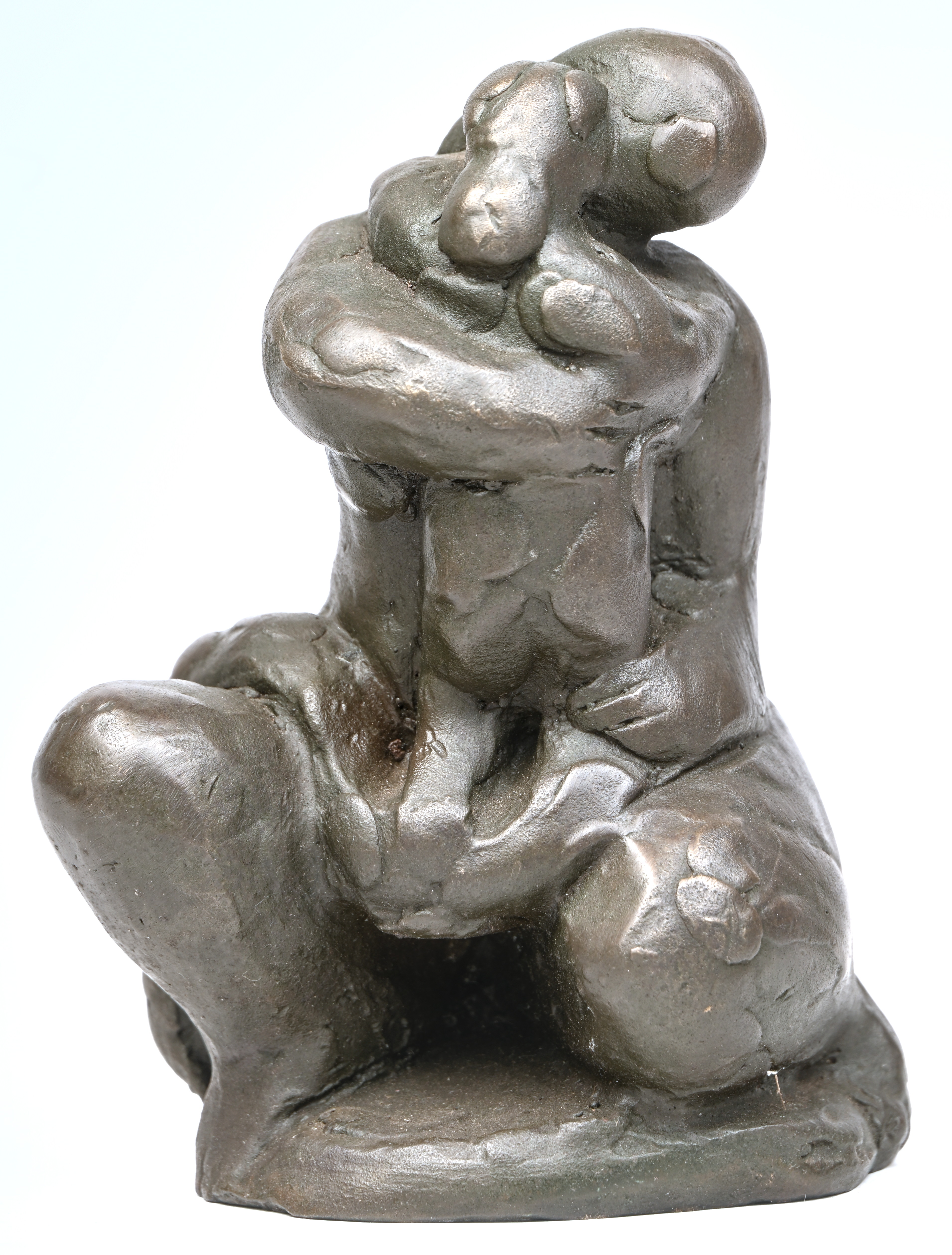 "In love couple," a modernist bronze sculpture on a green marble base. Monogram? -