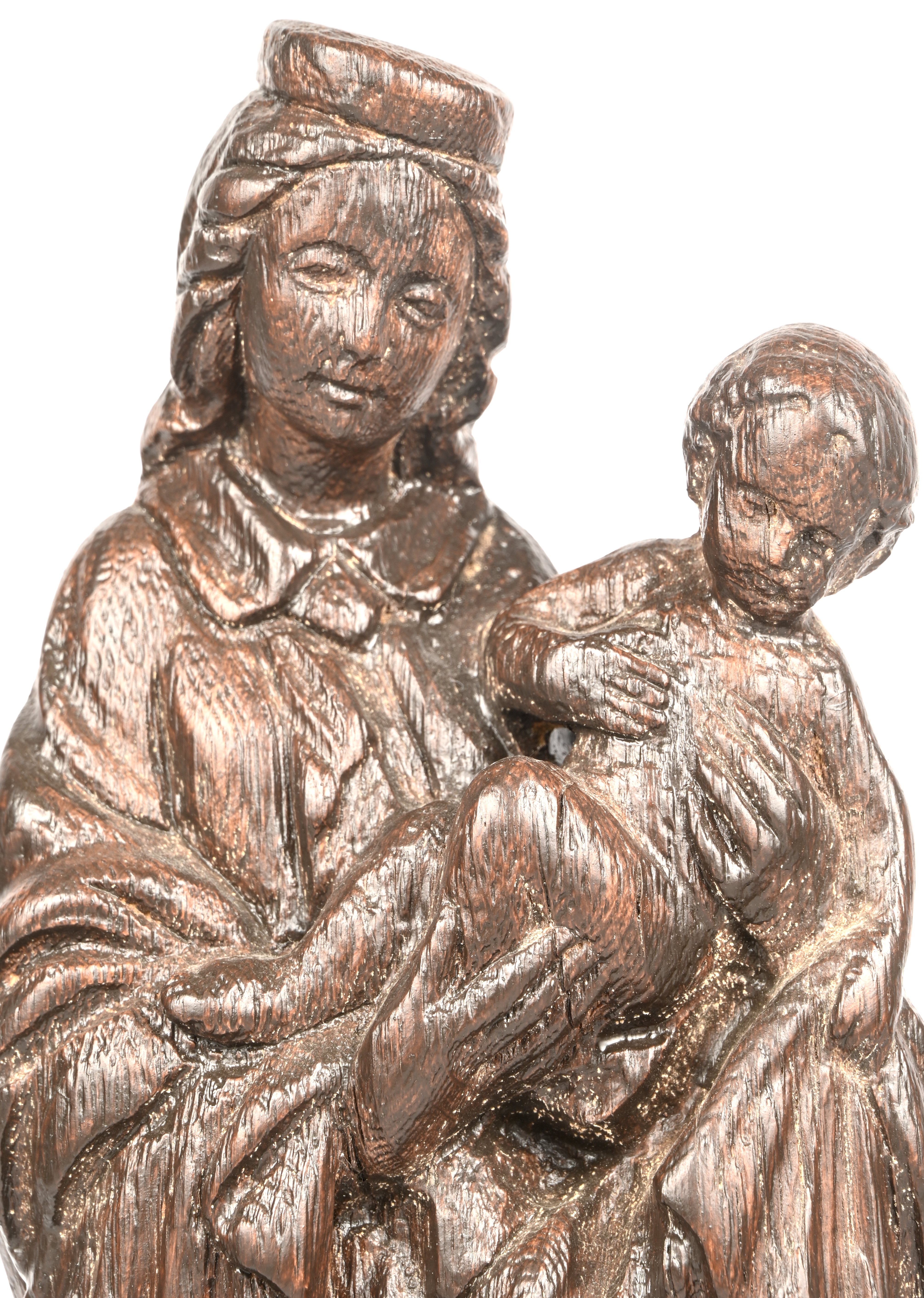 ‘Edeldame met verenhoed’, een buste van gepatinneerd brons. Getekend R. Gregoire.