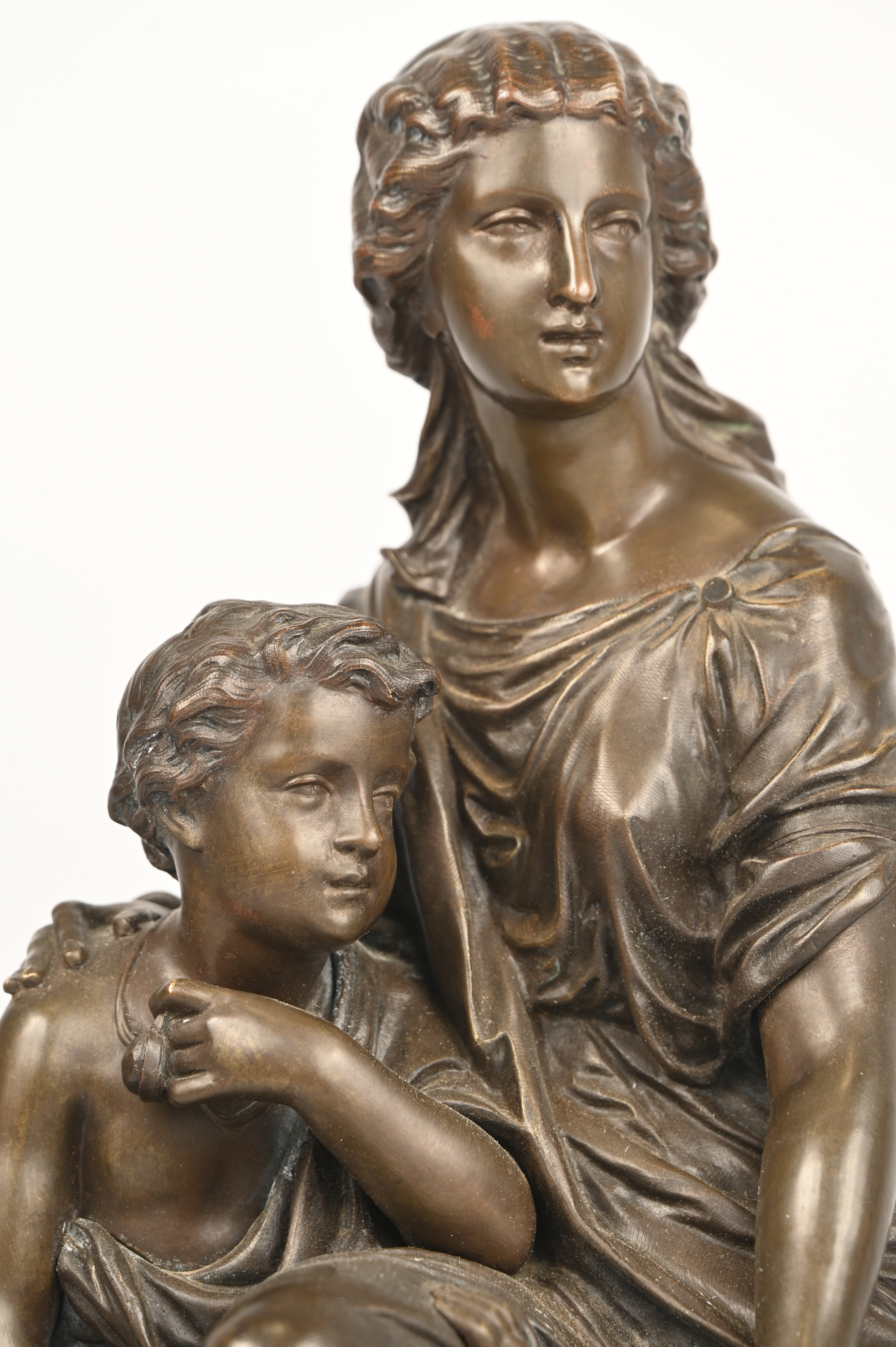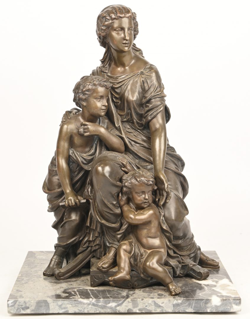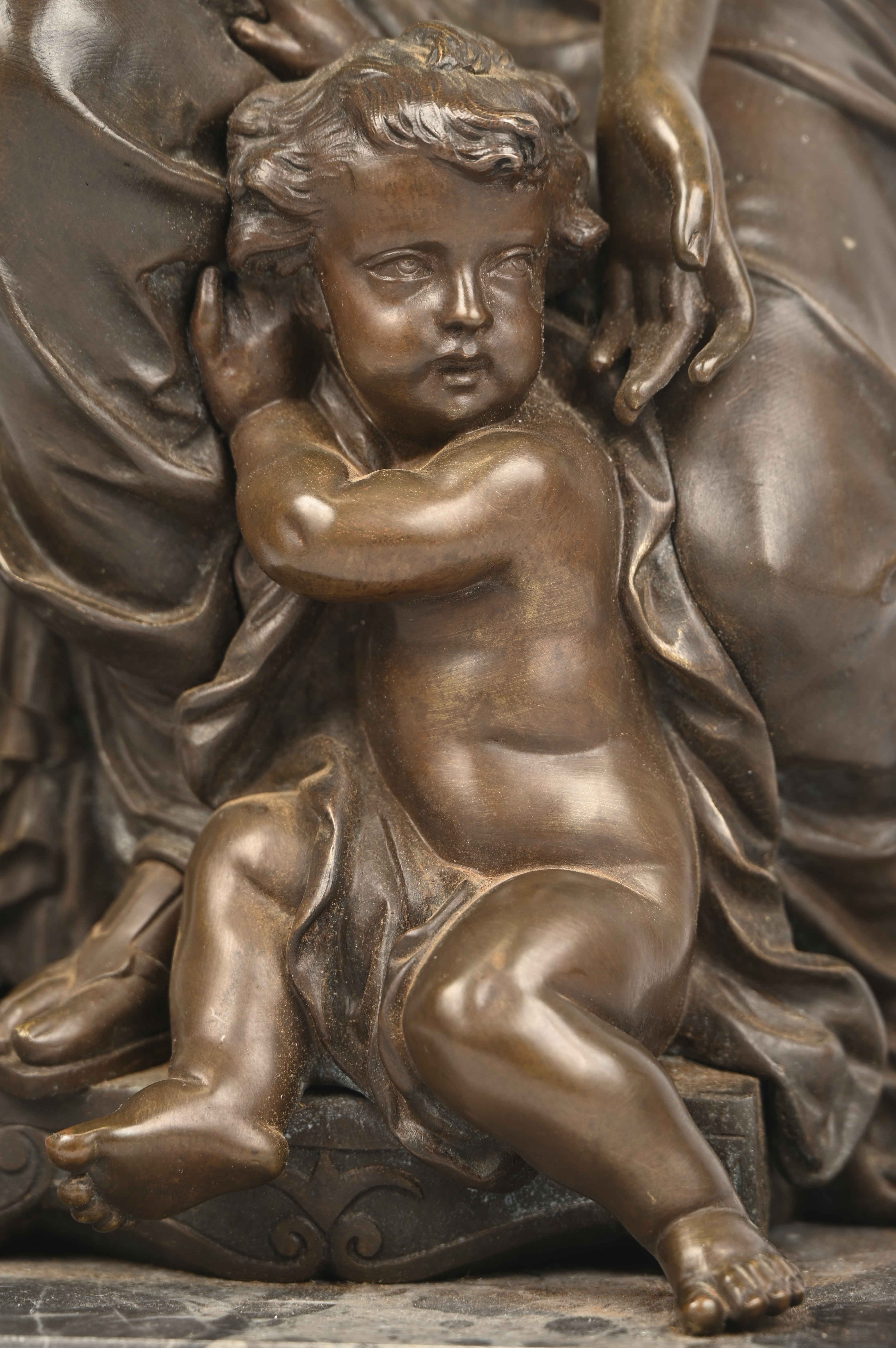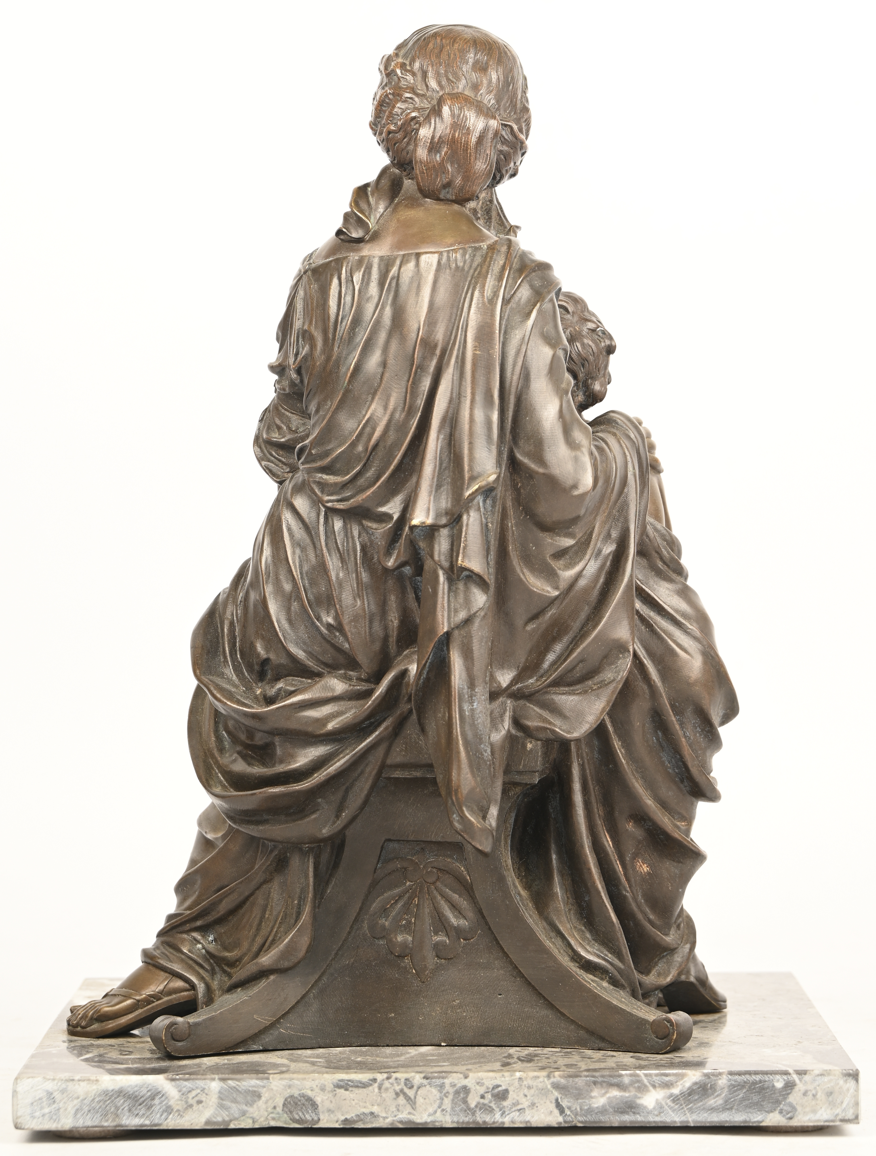 #5‘Het ganzenhoedstertje’, een gepatinneerd bronzen beeldje op een zwartmarmeren voet. Getekend H. Plé.