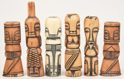 #569Een lot van 6 fetishbeeldjes uit been, Afrikaanse oorsprong.