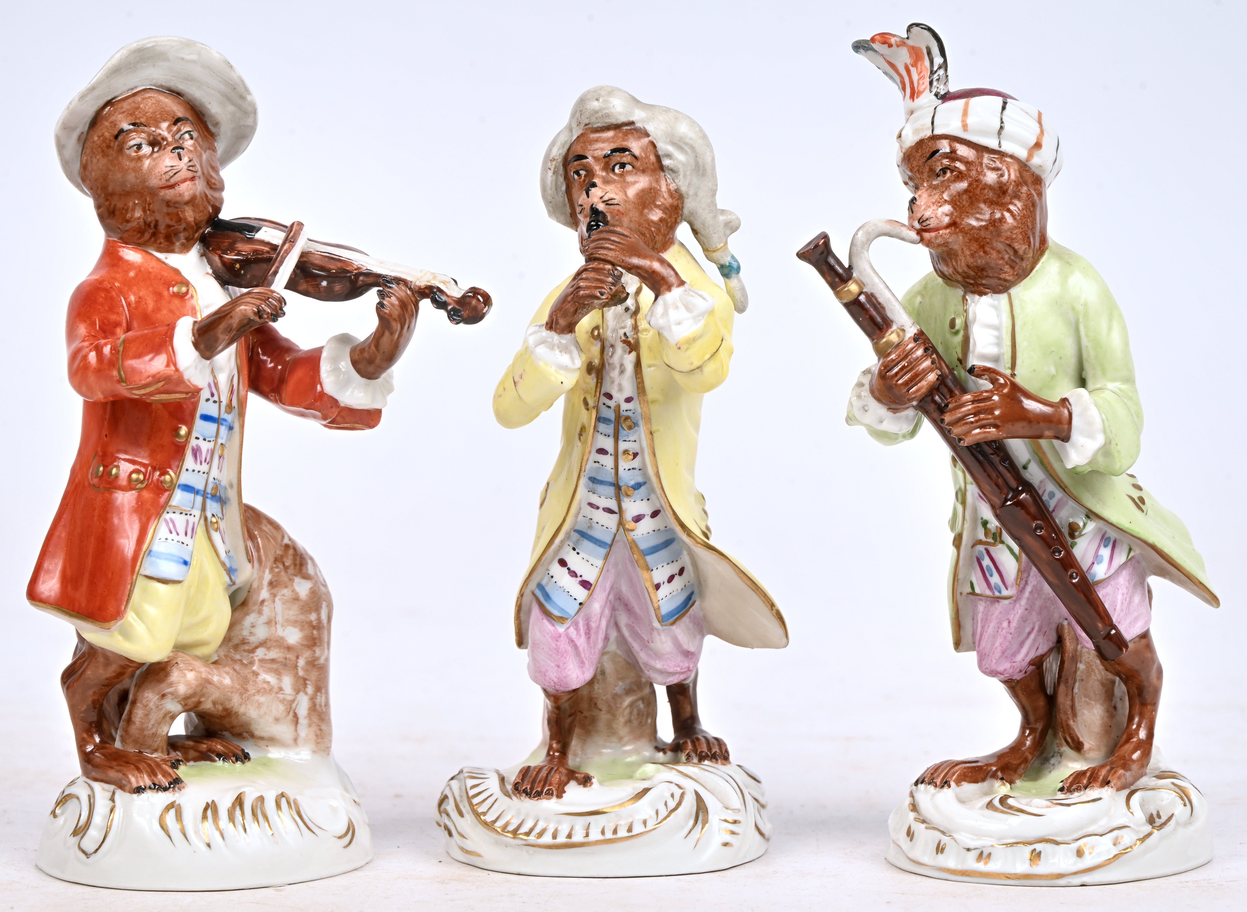 #146Een driedelig klokstelletje van blauw en wit aardewerk. Onderaan gemerkt: AMC.