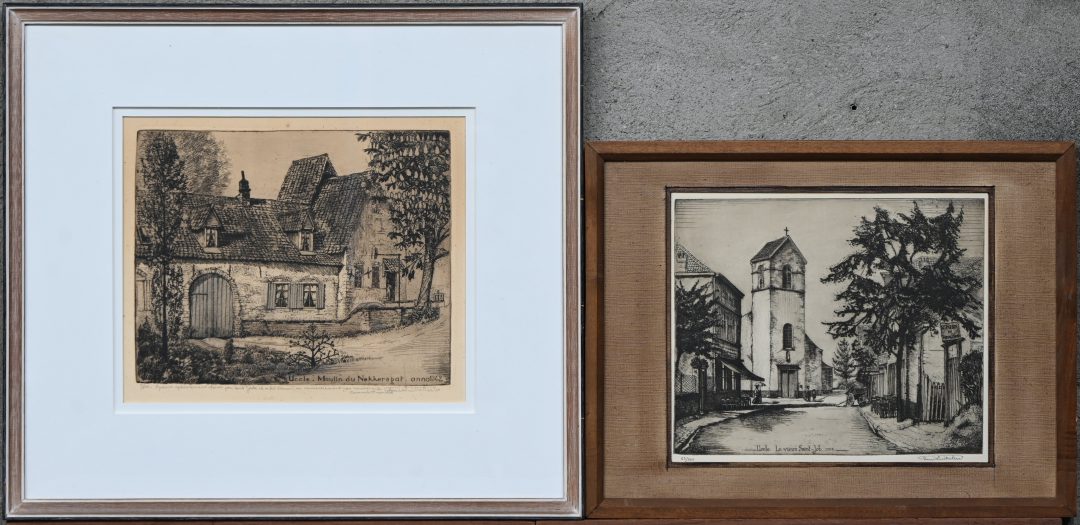 #312‘Liggend naakt’ en ‘Winterlandschap’, twee monochrome etsen getekend J. Gorus.