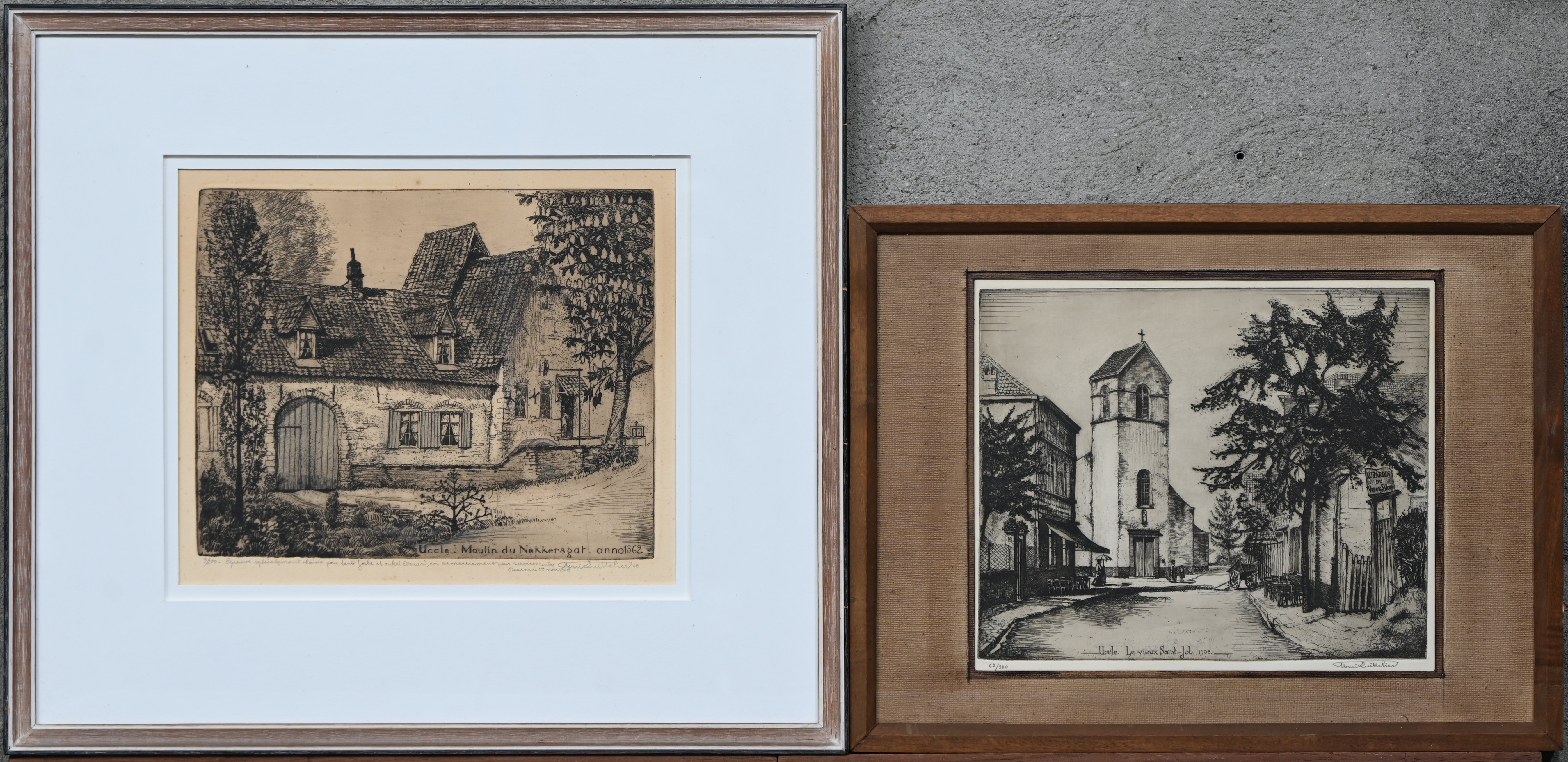 Three high prints by Eduard Pellens, Henry Van Straten, and a third unknown artist. Reproductions of the original plate by the Plantin Moretus museum in Antwerp. Without frame. -