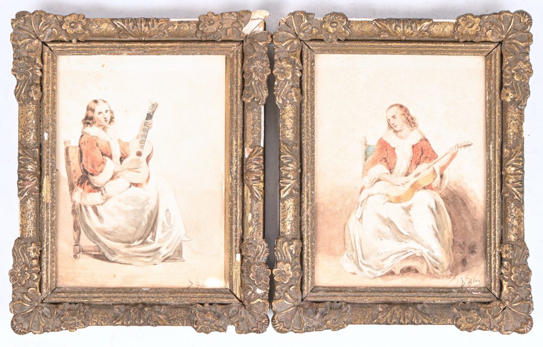‘Musical young women’, two watercolors by D. Bles.