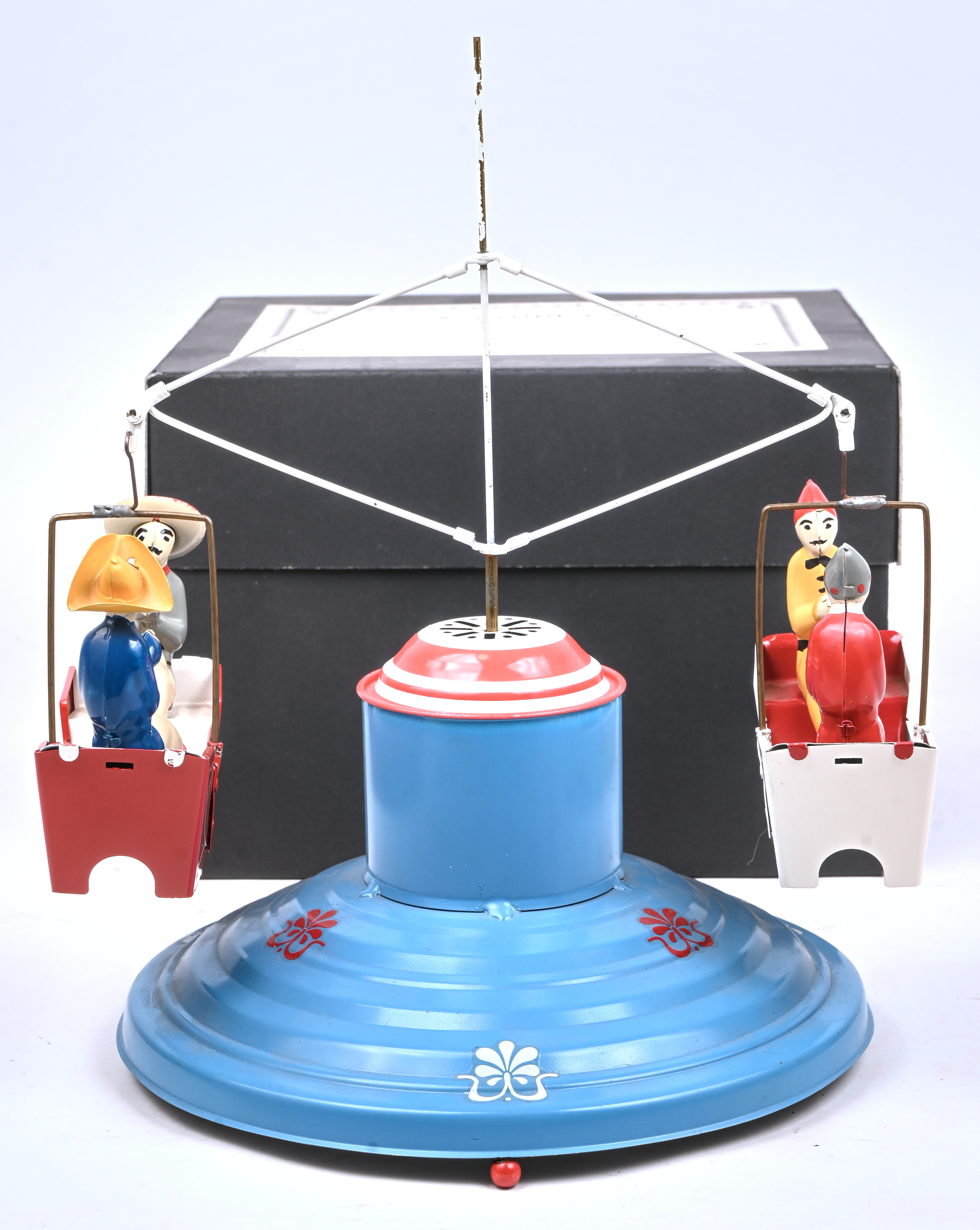 #16Nürnberger Bleichwaren Tucher & Walter‘Schiffschaukel’, een opwindbare kermisatractie. Model T-164, nr. 119 uit een oplage van 200 exemplaren. Met OVP.