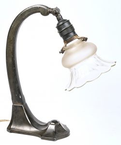 #283Een gietijzeren art deco bureaulampje, met glazen kapje. Niet gemerkt.