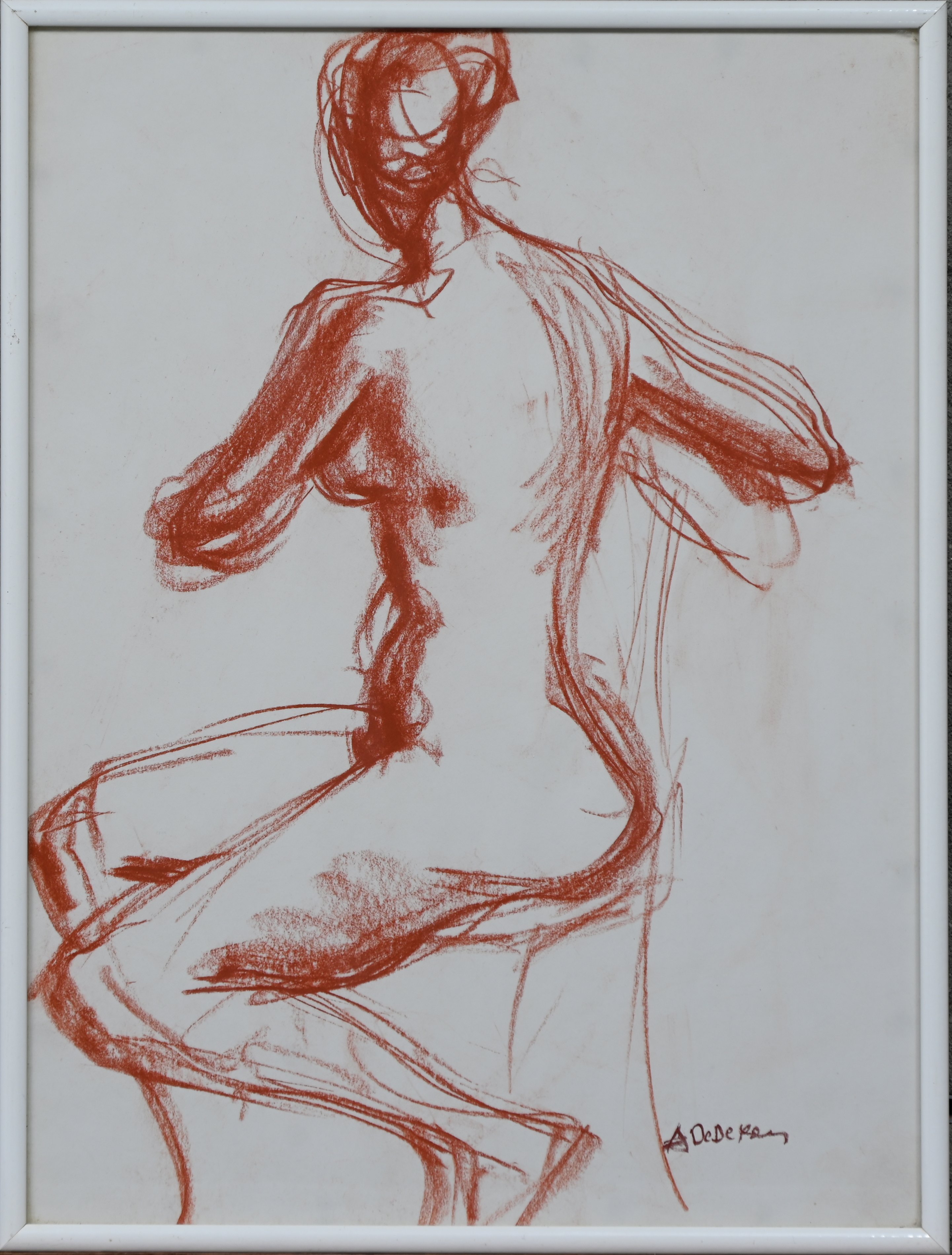 #224Twee studies naar vrouwelijk naakt. Rood krijt op doek, getekend E. Steel.