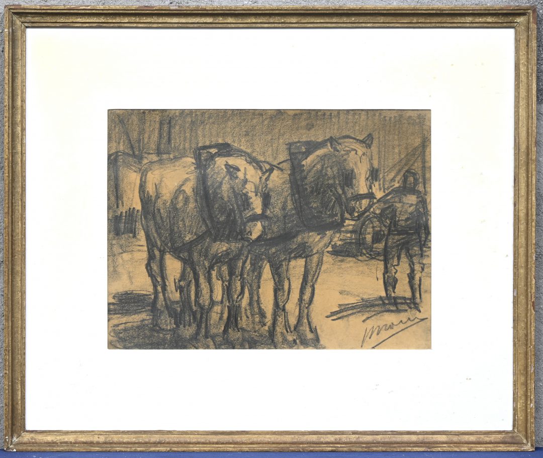 ‘National horses’, a chalk drawing. Signed J. Mous.
