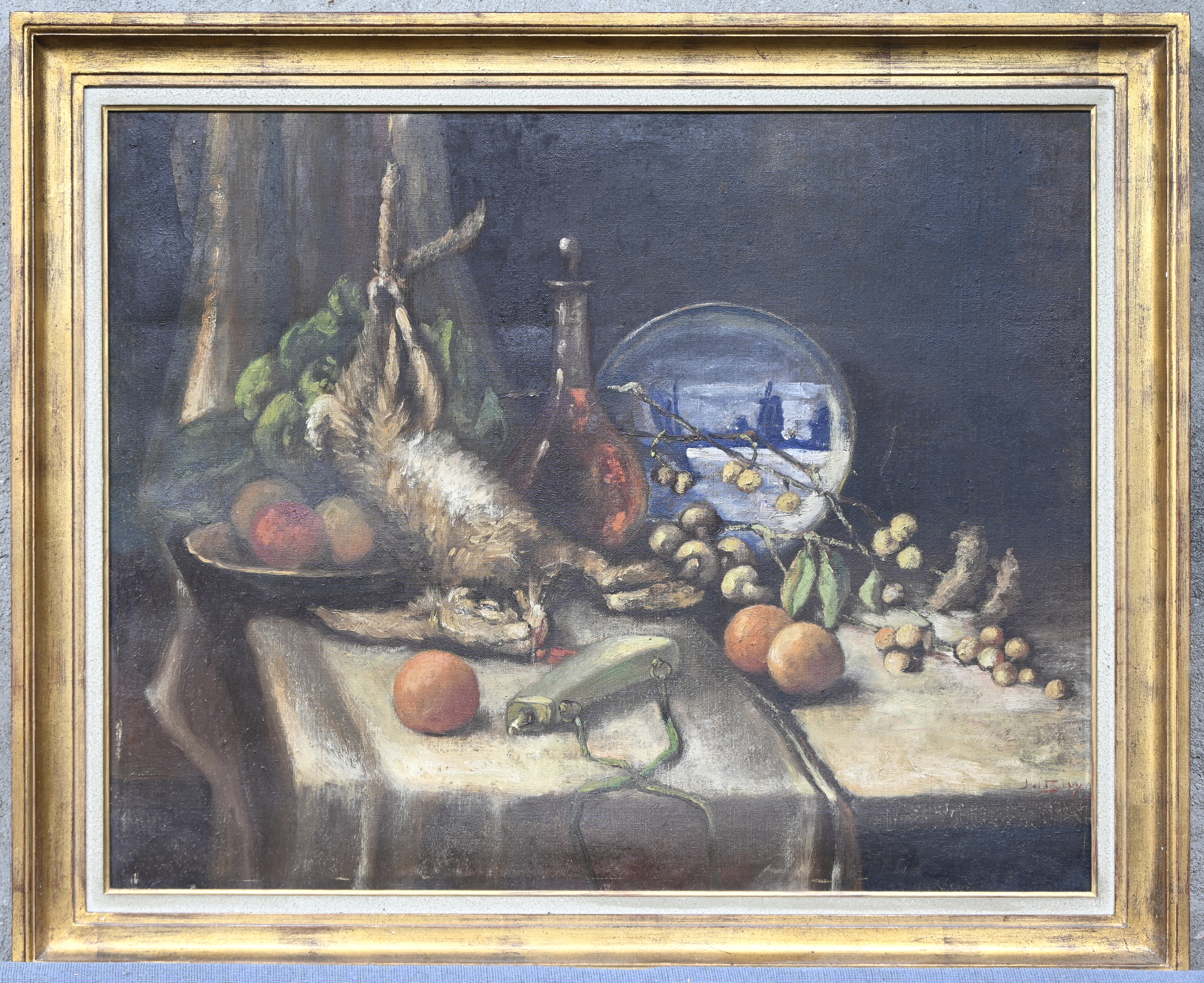 "Still life with copper pan", a painting, oil on canvas, signed and dated (on the back) 1962. -