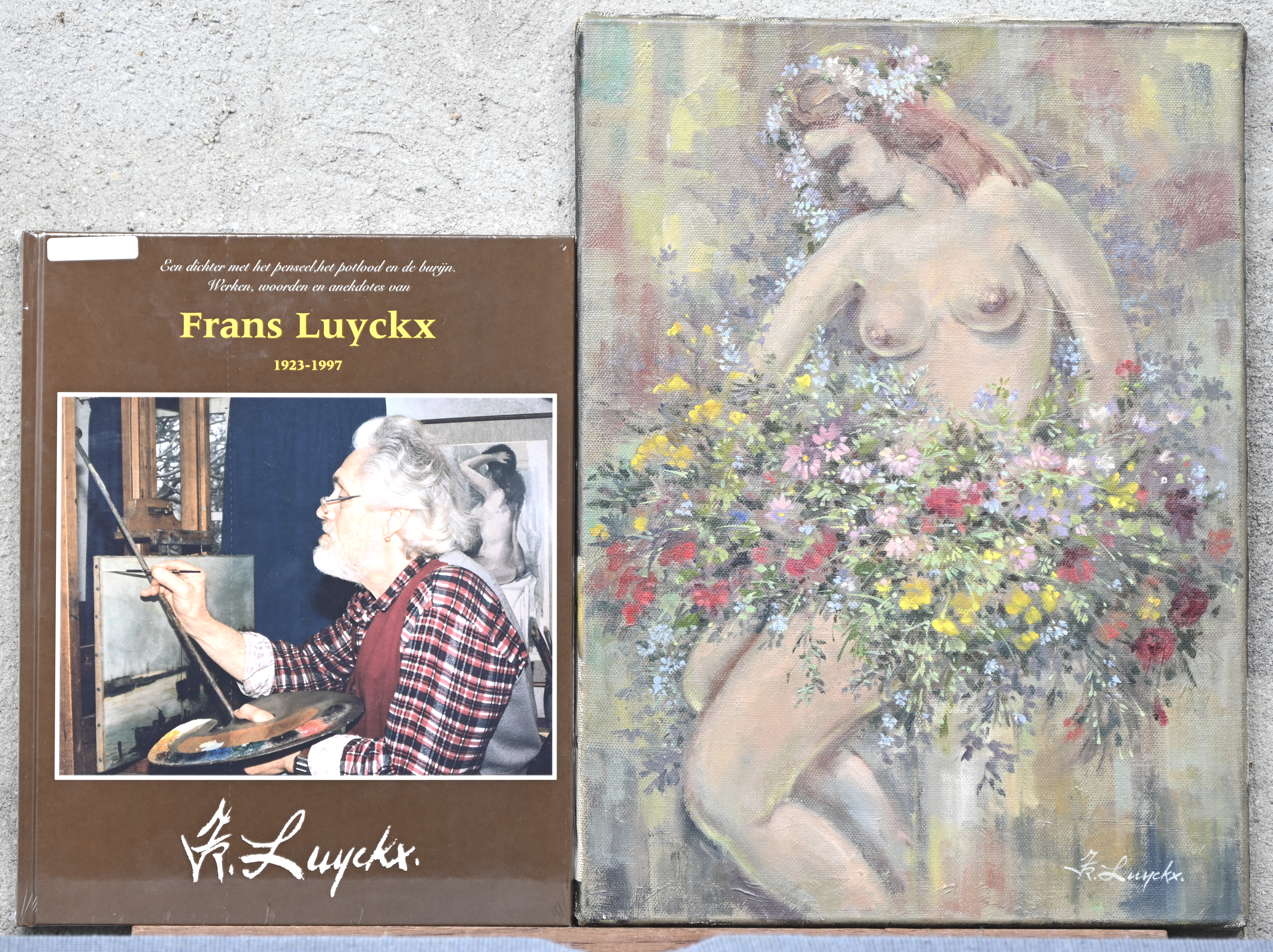 ‘Natuurweelde’, een symbolistisch olieverfschilderij op doek. Getekend Fr. Luyckx. Toegevoegd een boek over het werk van de kunstenaar.