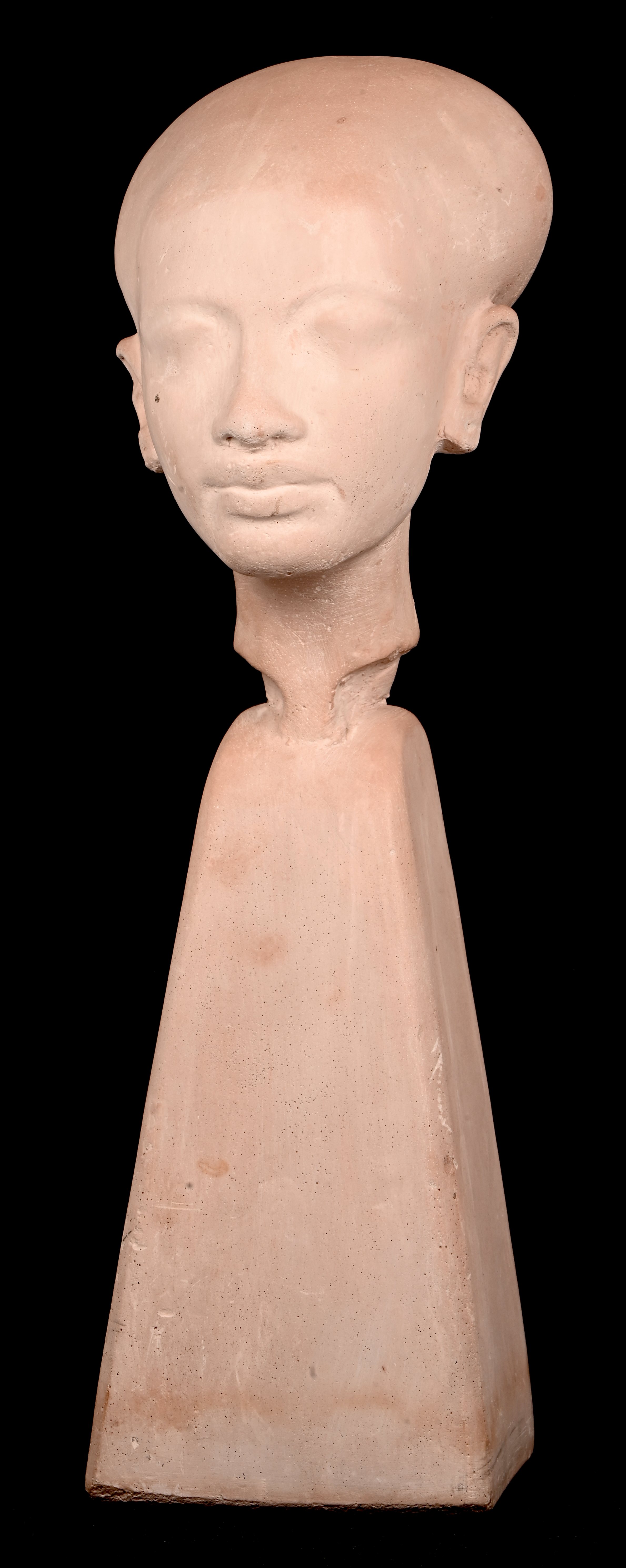 "Nefertiti", a head on pedestal, cast composite, signed and dated 3-11-2002.