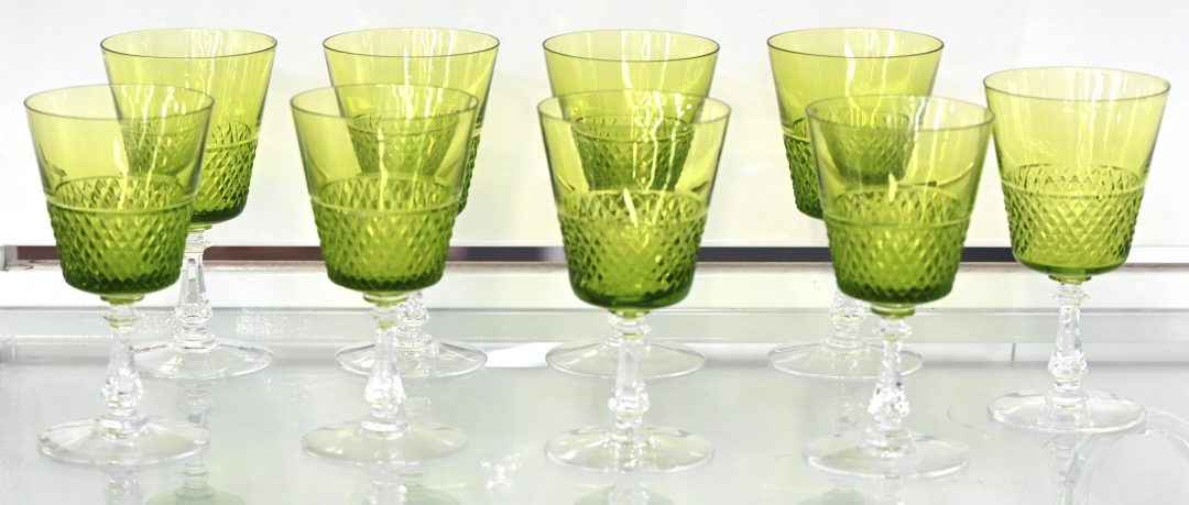 A mirror with a frame in pink mirrored glass and a diamond pattern.