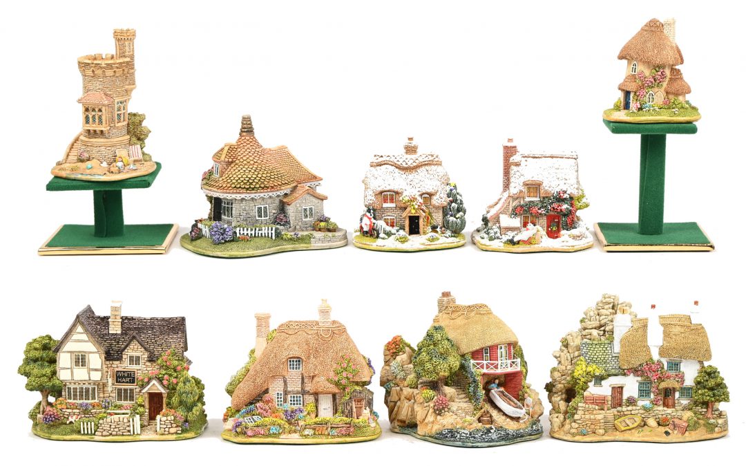 Negen ‘Lilliput Lane’ huisjes. In OVP, de meeste met attest. ‘Smuggler’s Rest’, ‘Dad’s Potting Shed’, ‘The Sandcastle’, ‘Sail Away’, ‘Chill Out’, ‘With Thanks’, ‘The Toadstool’, ‘The White Hart’ & ‘I-Cycle’.