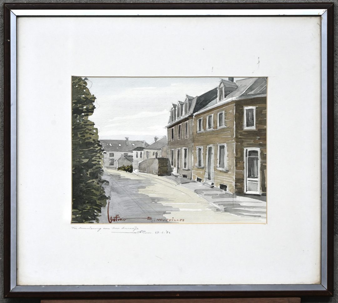 ‘Neufvilles’, een aquarel. Getekend, met opdracht ‘Ter herinnering aan uw huwelijk’, 27.2.’82.