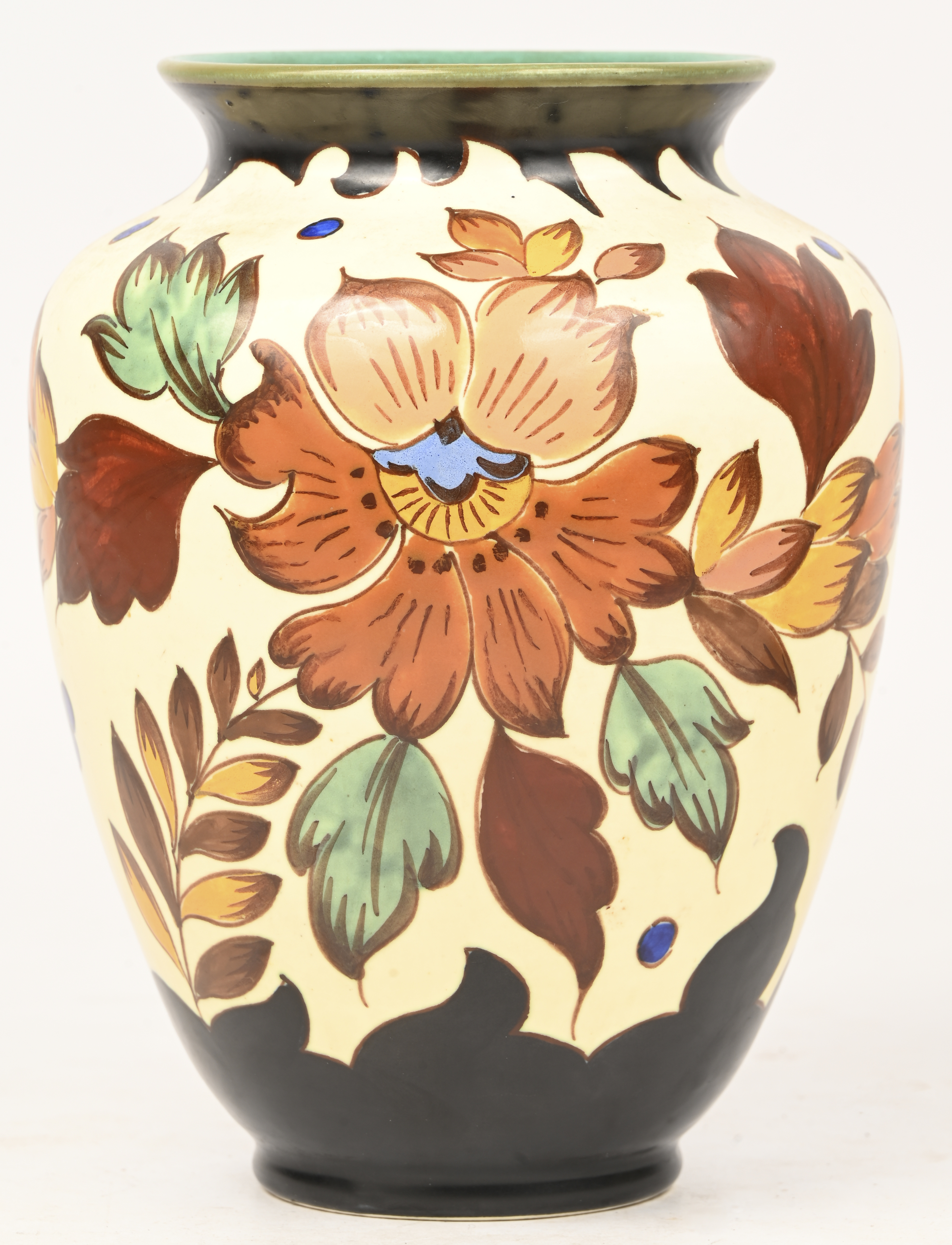 #212Een lot van 2 art-deco bonbonnières, Booms glas, toegevoegd een Doyen vaas met schilfer aan de rand.