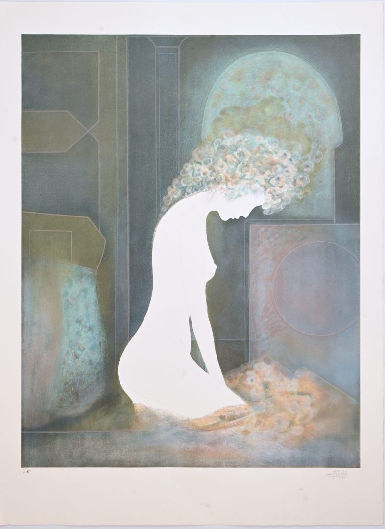 ‘Nu au clair de Lune’, a color lithograph. Signed Guy Ribes, E.A. Without frame.
