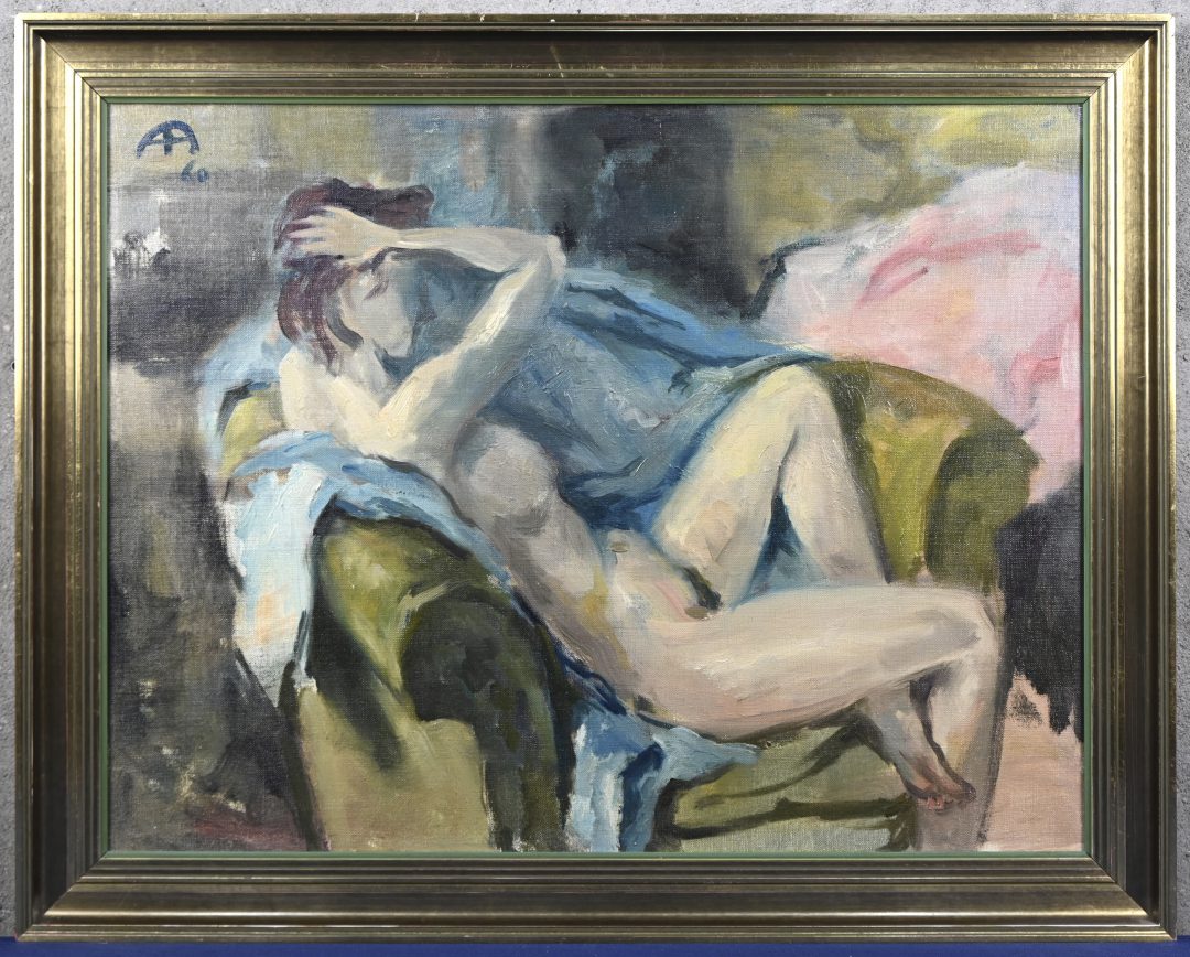 #74Gust Verhelst‘Zittend naakt’, olieverf op doek. Getekend Gust Verhelst.