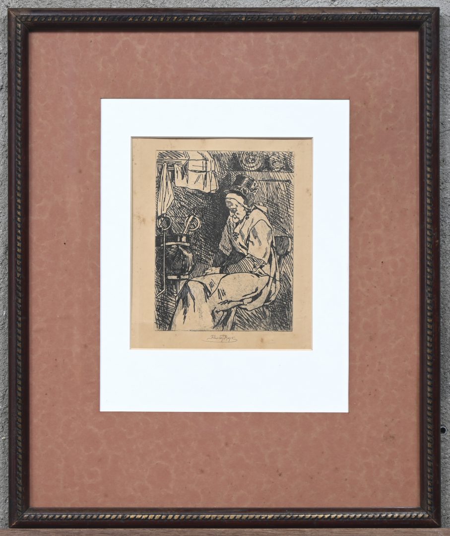 #292Henri RamaekerPeriod: 1887-1957‘Dorpszicht’, een monochrome ets in kubistische stijl. Getekend Ramah.