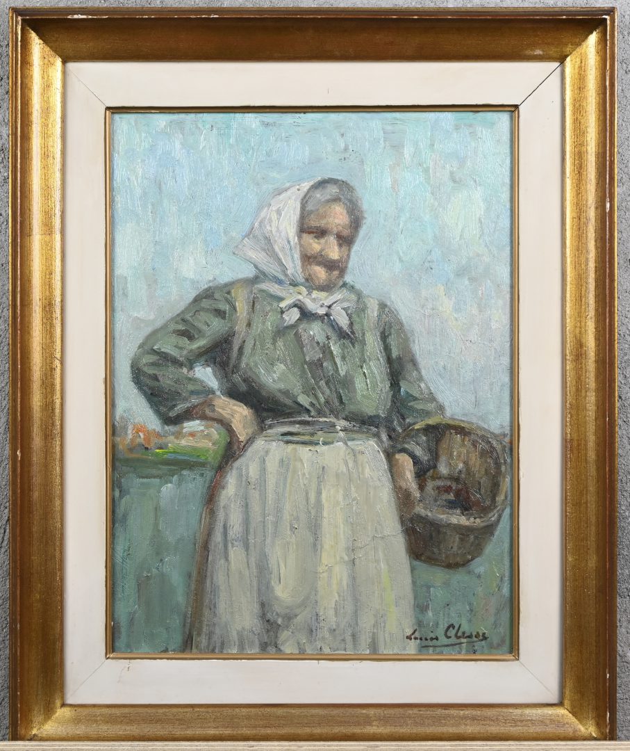 “Vissers en vissersboten op het strand”. Olieverf op paneel.