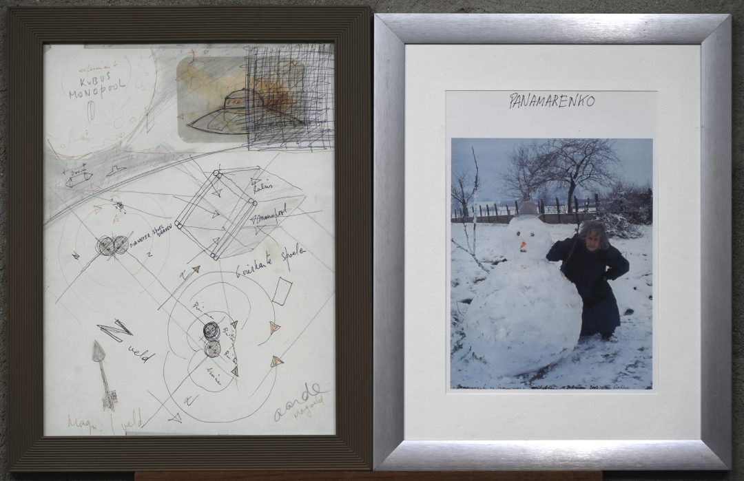 #212‘Vliegende schotel’, een ingekaderde offset print naar het werk van Panamarenko.