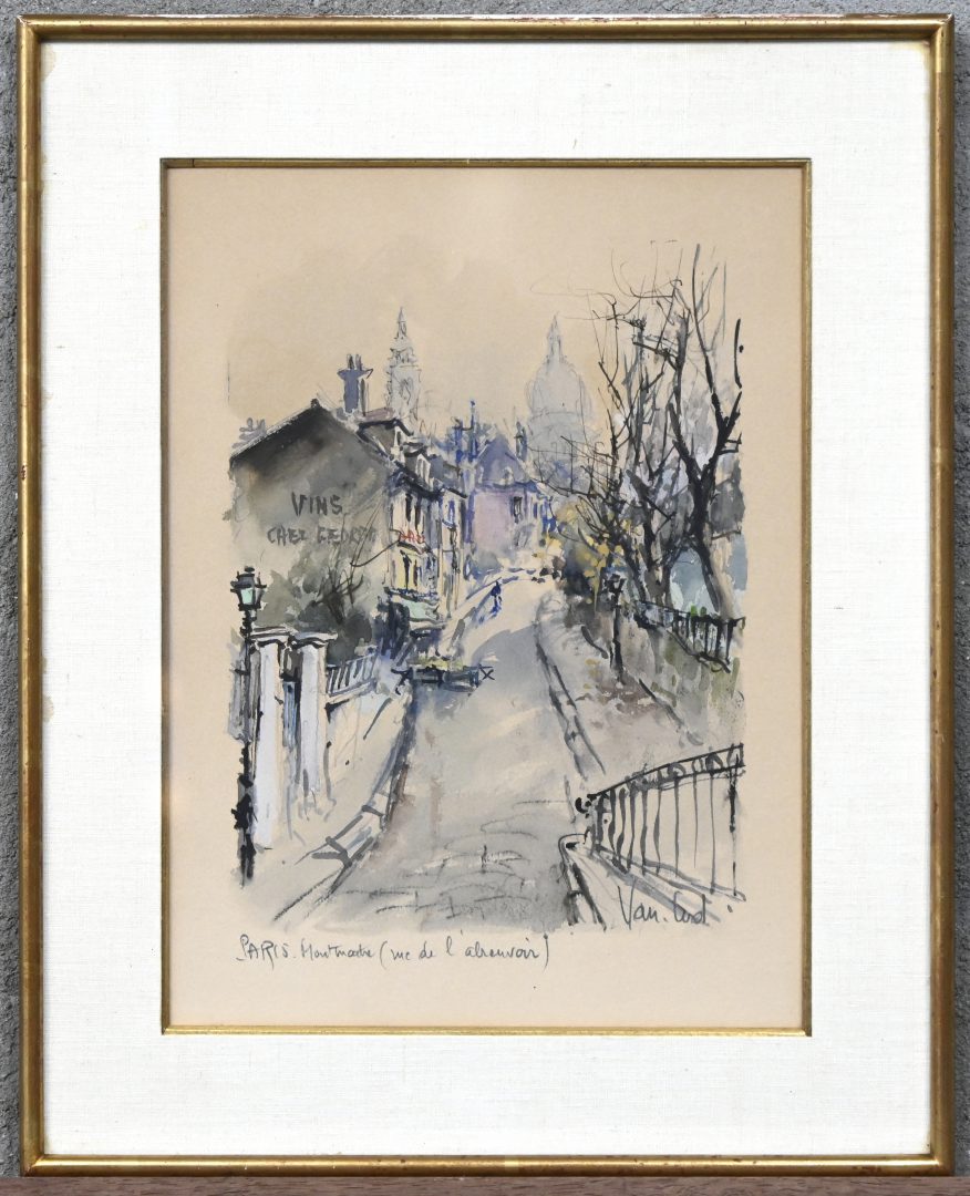 #223Period: 1981‘Neufvilles’, een aquarel. Getekend, met opdracht ‘Ter herinnering aan uw huwelijk’, 27.2.’82.