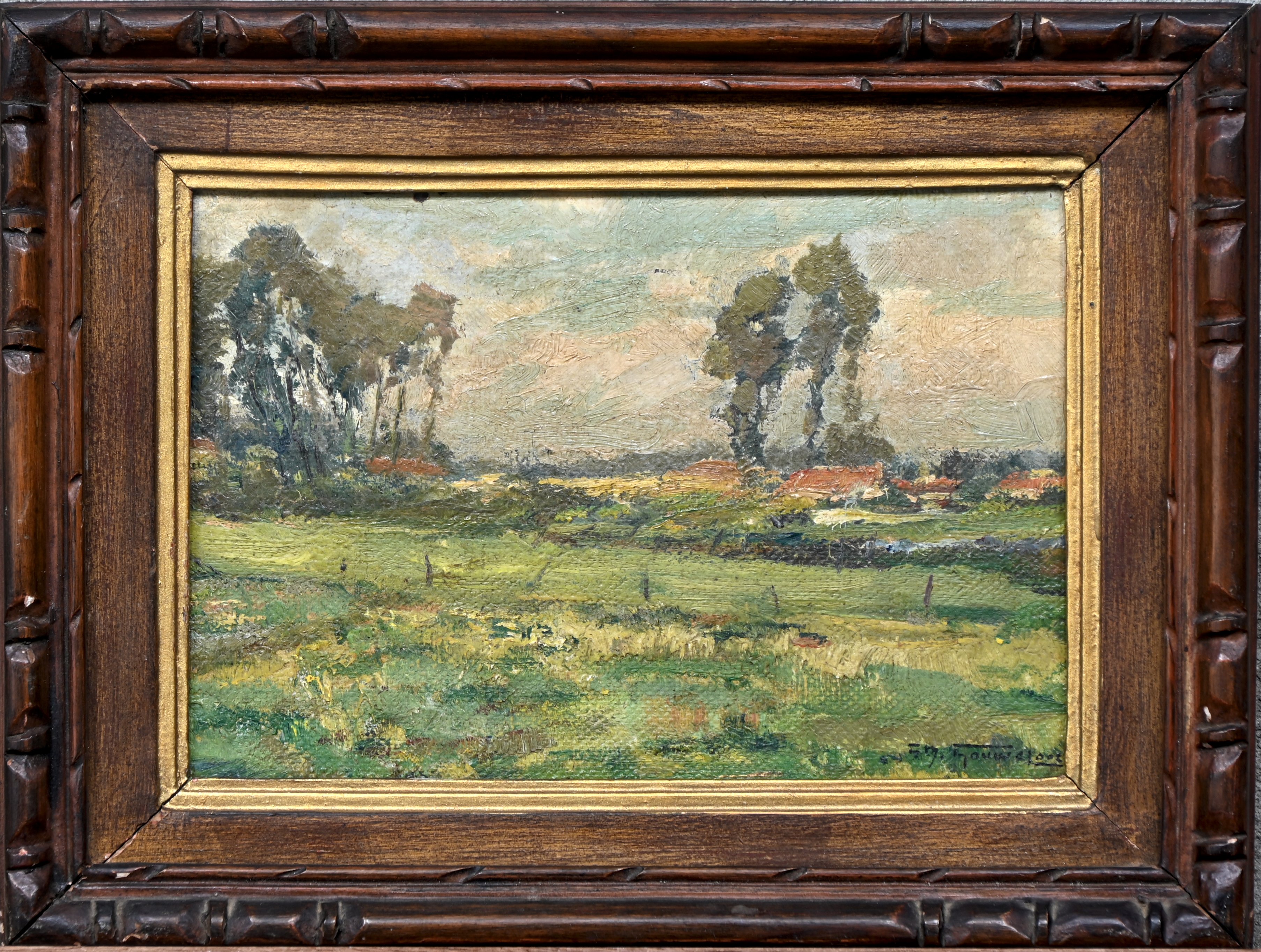 ‘Polderlandschap’, olieverf op schilderspaneel. Getekend Ch. Gouweloos.