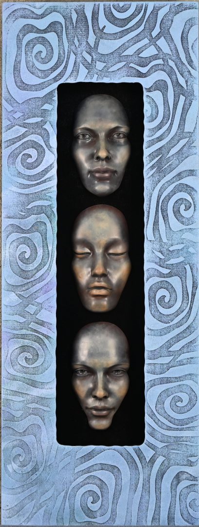 ‘Miradas en secuencia’, polychrome keramische sculptuur in een uitgefreesde en beschilderde omlijsting. Op de rug getekend; Arroyo. Met certificaat.