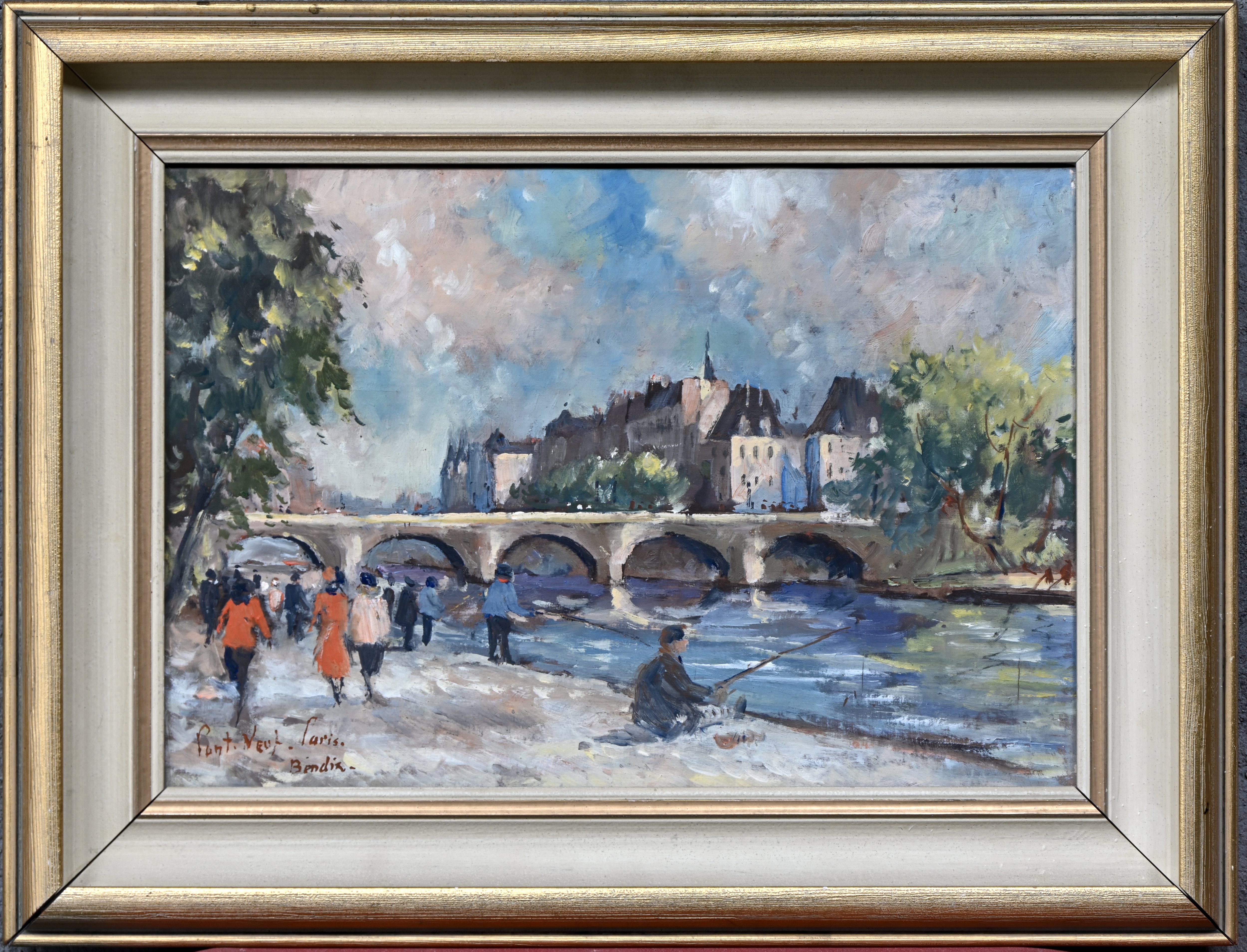'Pont Neuf, Paris', a post-impressionist oil painting on canvas. Signed Bendir.