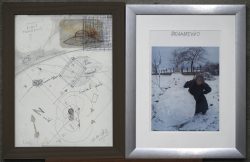 #310‘Panamarenko en sneeuwman’ en ‘Kubus monopool’. Een lot van twee ingekaderde offset prenten naar het werk van Panamarenko.
