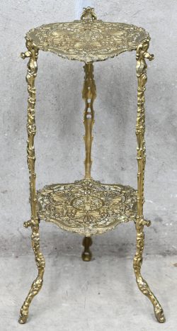 #26Een messingen plantenstaander met twee niveaus, opengewerkt in Louis XV stijl.