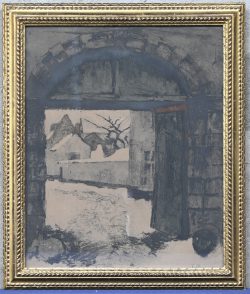 #444Kuyten‘Landschap met kerk’, een studie in olieverf op papier. Getekend H. Kuyten.