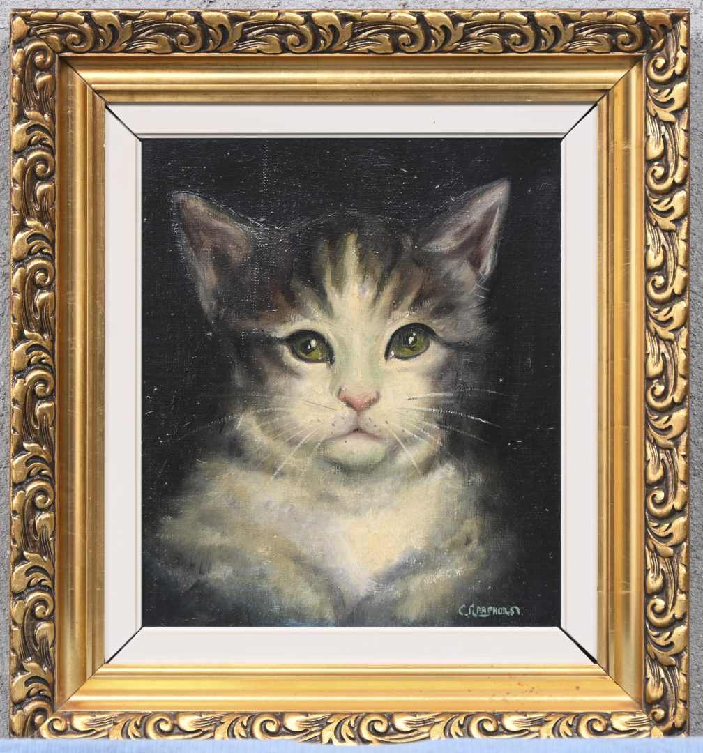 #104‘Interieur met bisschop en kat’, olieverf op doek. In de stijl van Marais-Milton. Getekend; Chawnan.
