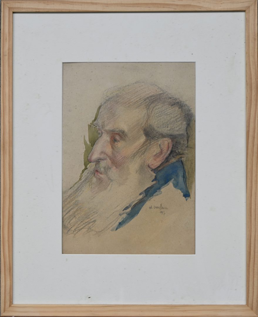 ‘Portret van een man met baard’, potlood en aquarel op papier. Getekend Ed. Scauflaire, 1917.