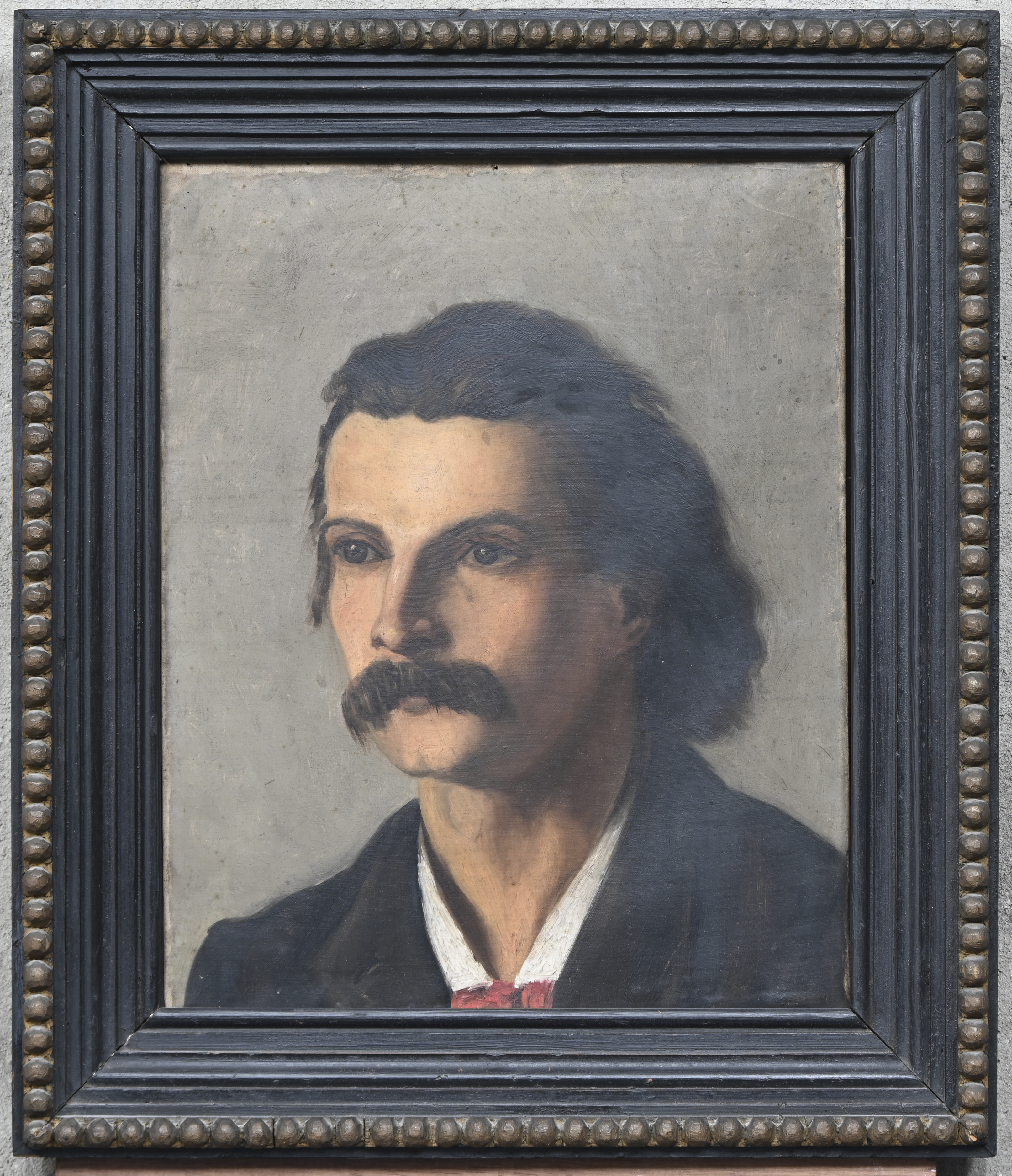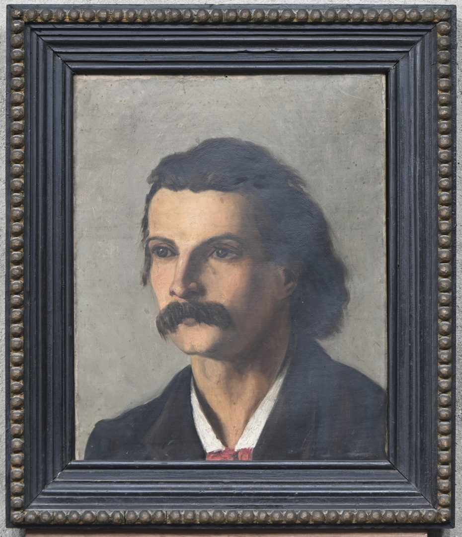 Portrait of Aloïs De Laet, oil on panel. Signed by Tilla Van Hees. Tilla Van Hees learned to paint in the studio of Aloïs De Laet. -