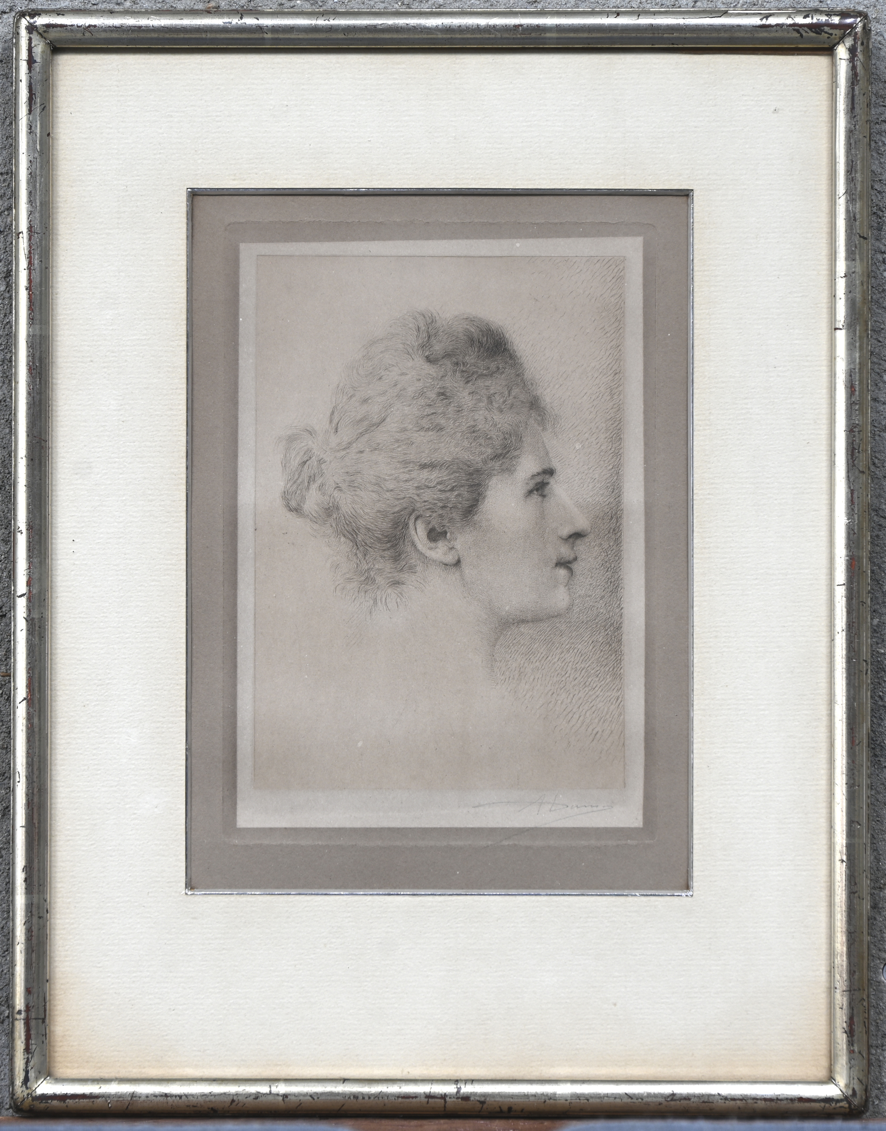 “Portrait of Louise Danse, daughter of the artist,” a monochrome etching. Signed A. Danse.