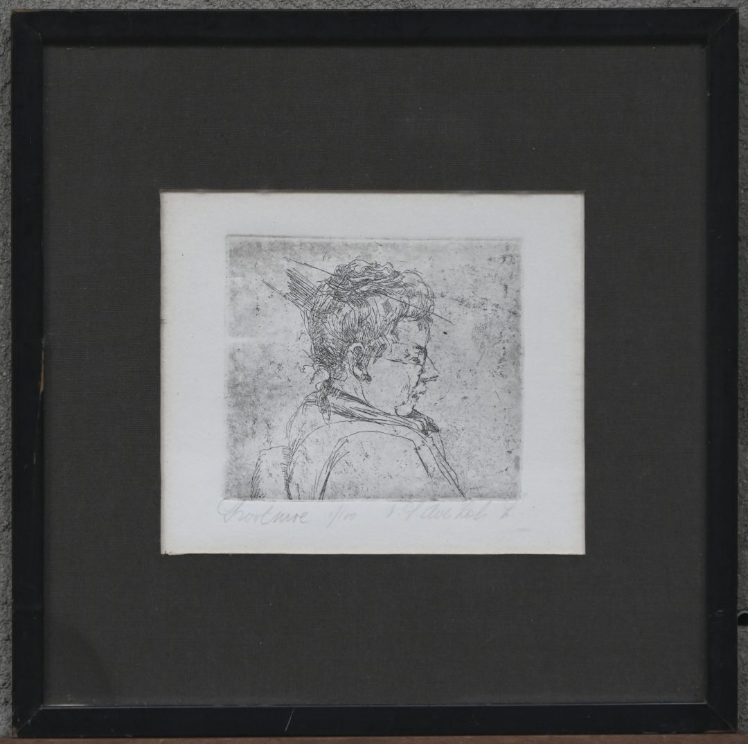 “Profielportret”. Een ets op papier. Buiten de plaat genummerd 1/10 en gesigneerd.