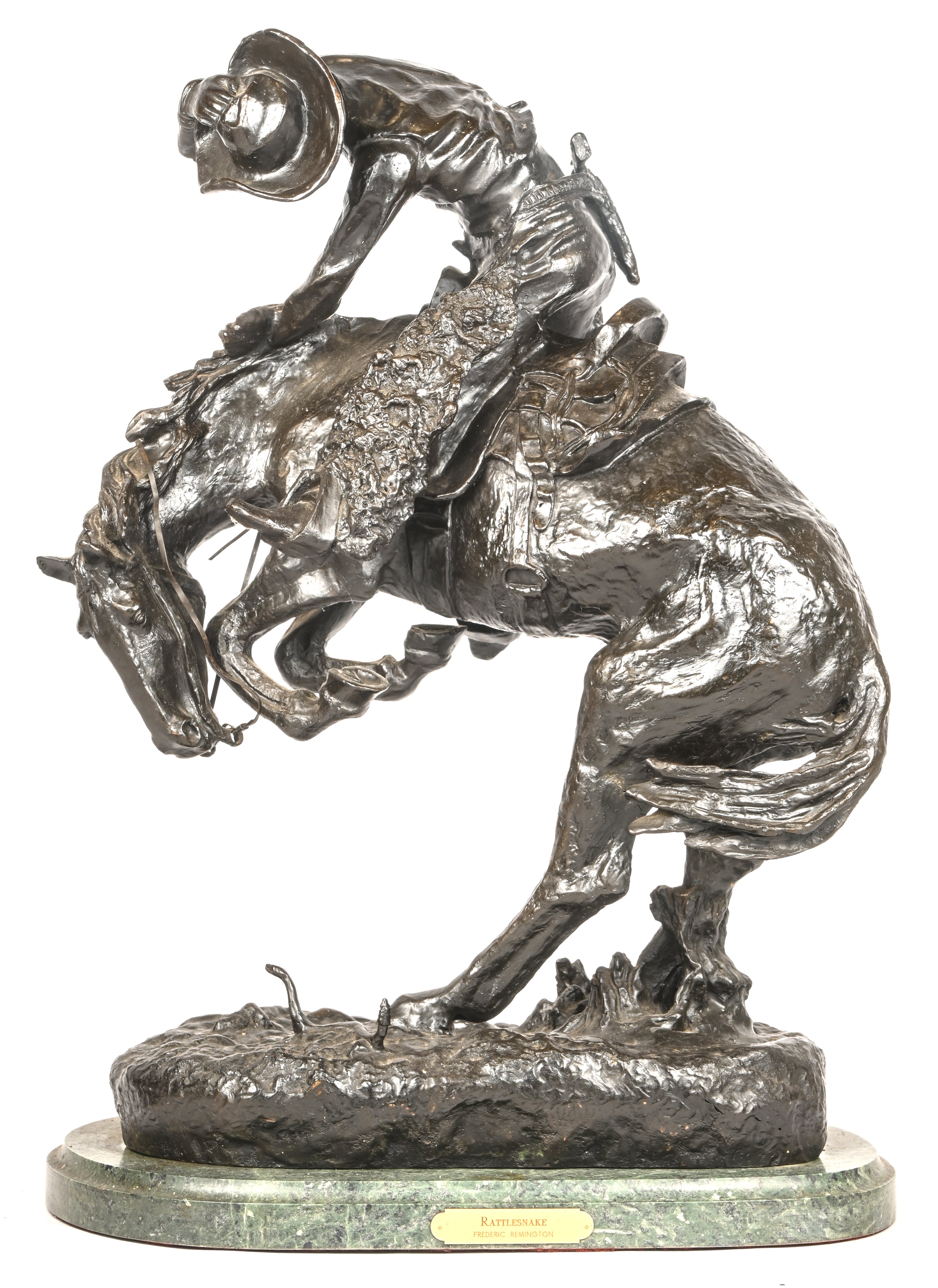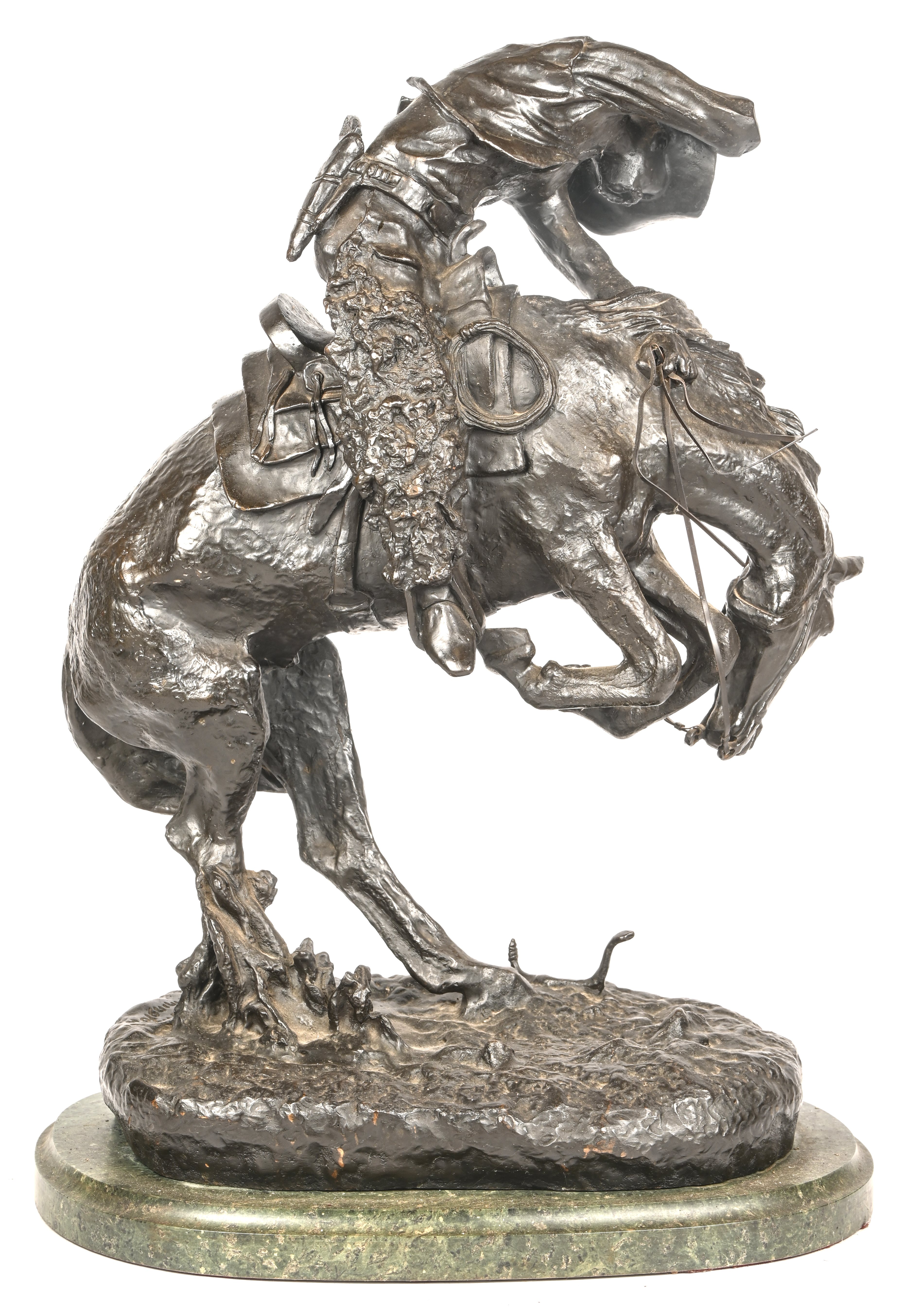 "Tuareg warrior on his dromedary." Bronze statue with green-brown patina. Signed.No longer availableDim. H. 88 cmEstimate: € 500 / 800 -